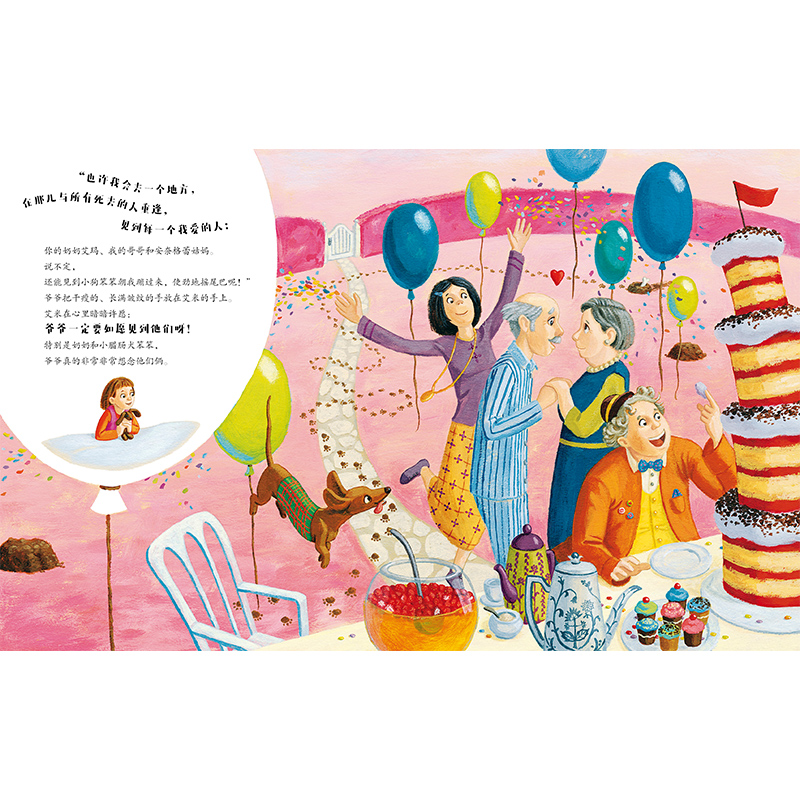 故事的亮点在于对死后可能发生的事情的不同观点,也传达了爷爷渴望从疾病和痛苦中解脱出来。故事里,答案是敞开的,没有传达任何教条。故事不仅为孩子们,也为很多成年人思考“死亡”这一主题打开了新的视角。