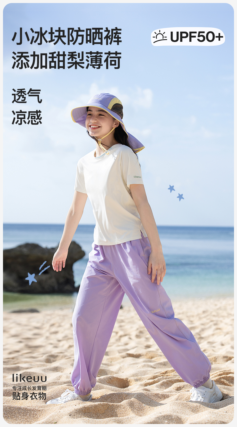 ubras旗下likeuu小冰块防晒裤儿童甜梨薄荷夏季男女童防晒休闲裤ZY