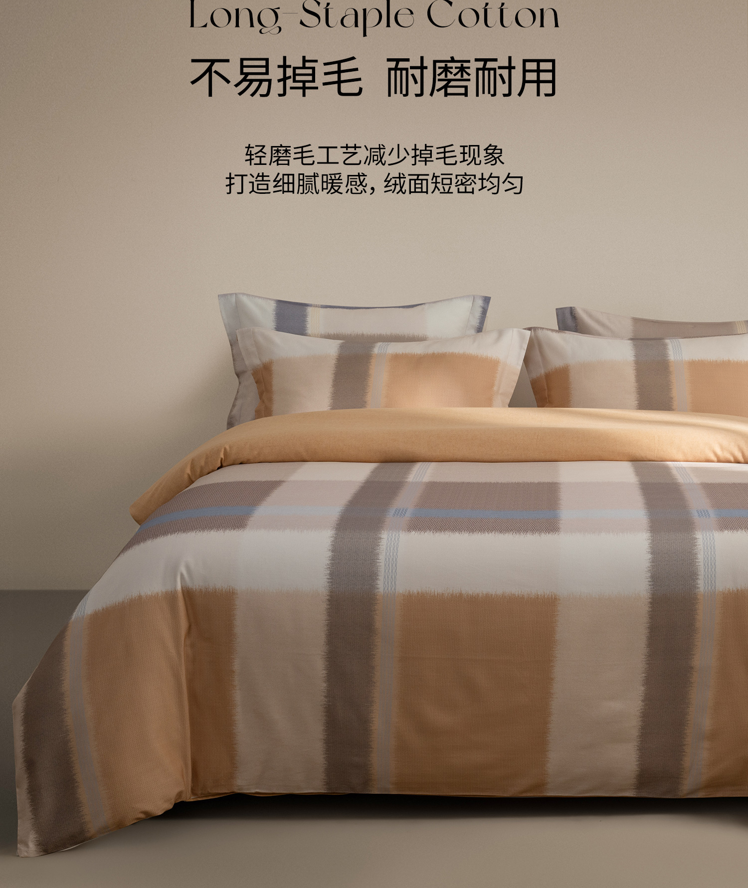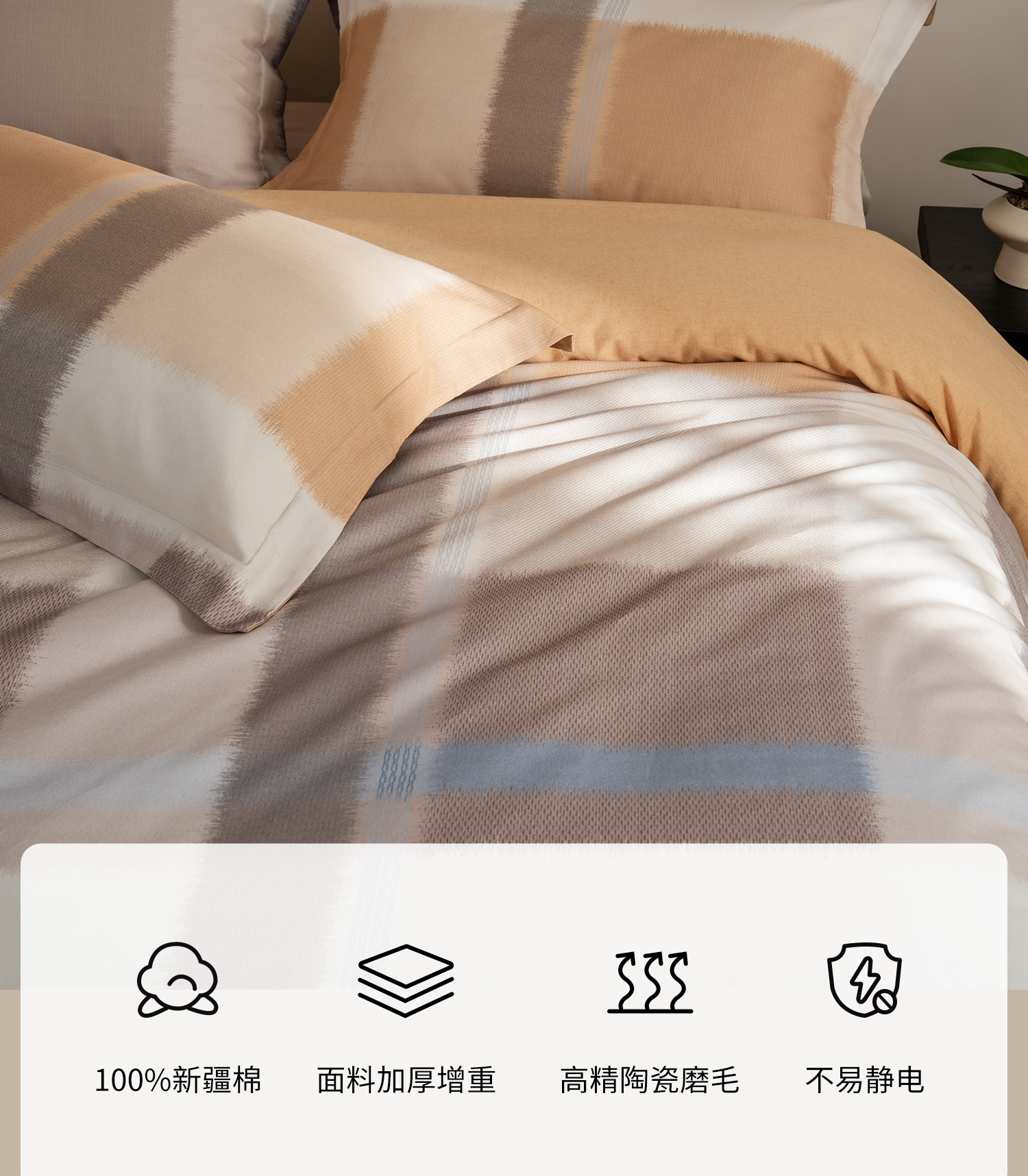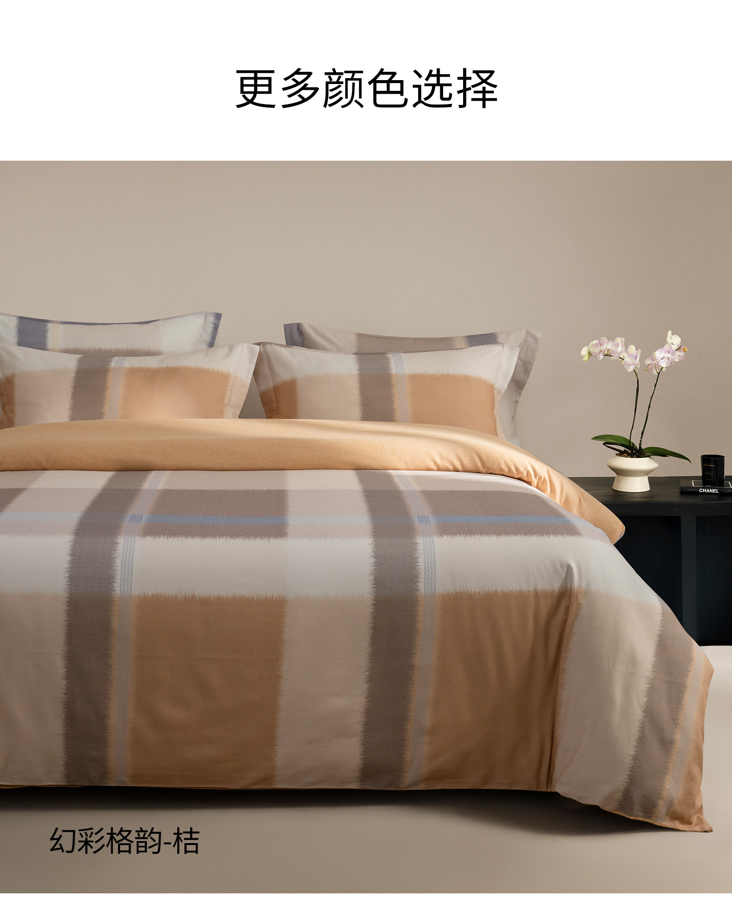 【预售-12月29日配送】佳丽斯全棉印花磨毛套件(幻彩格韵-桔)/1套(床单款,被套220*240cm,适合1.8床)