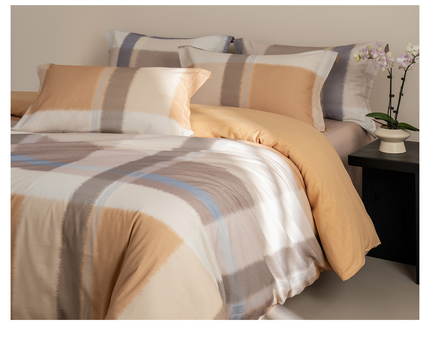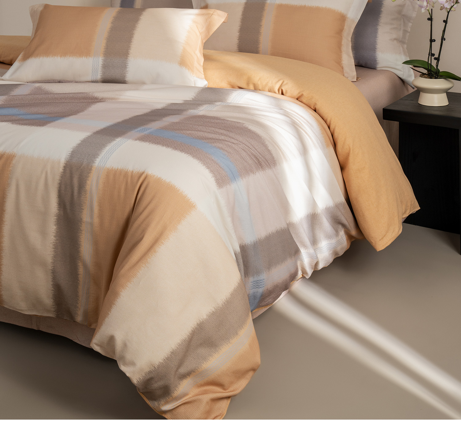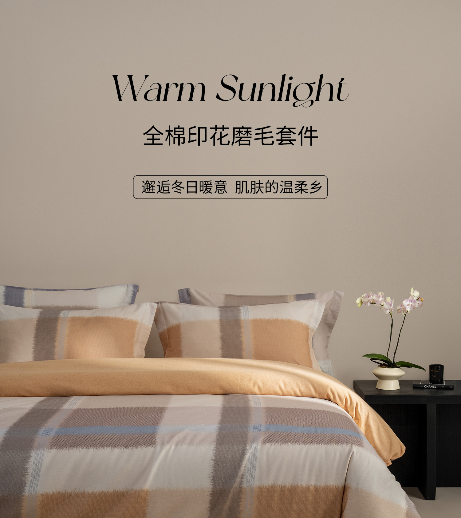 【预售-12月29日配送】佳丽斯全棉印花磨毛套件(幻彩格韵-桔)/1套(床单款,被套220*240cm,适合1.8床)