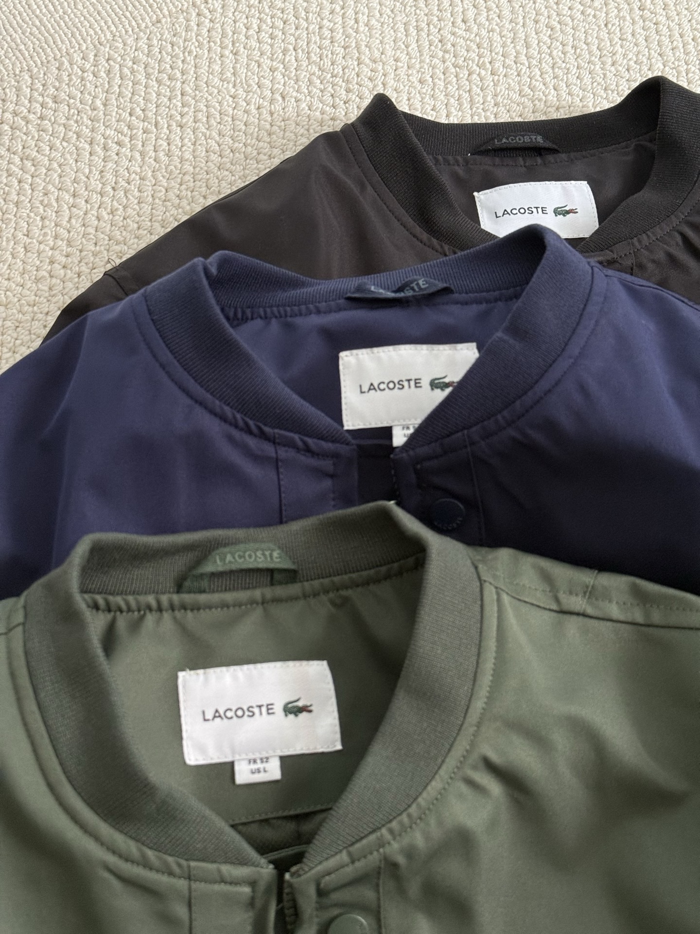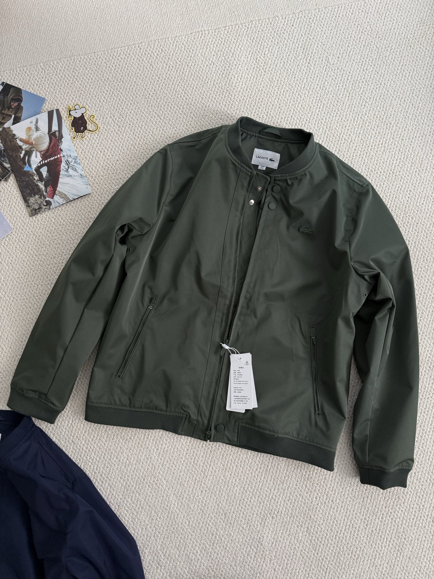 棒球领 拉链门襟设计,特别显年轻有活力!最新的大身同色系3D硅胶质感鳄鱼logo刺绣点缀!两侧拉链金属插袋,老钱风复古有型!下摆和袖口都是高密螺纹加持,耐穿好穿!后背设有微开褶设计,增加视觉立体感!