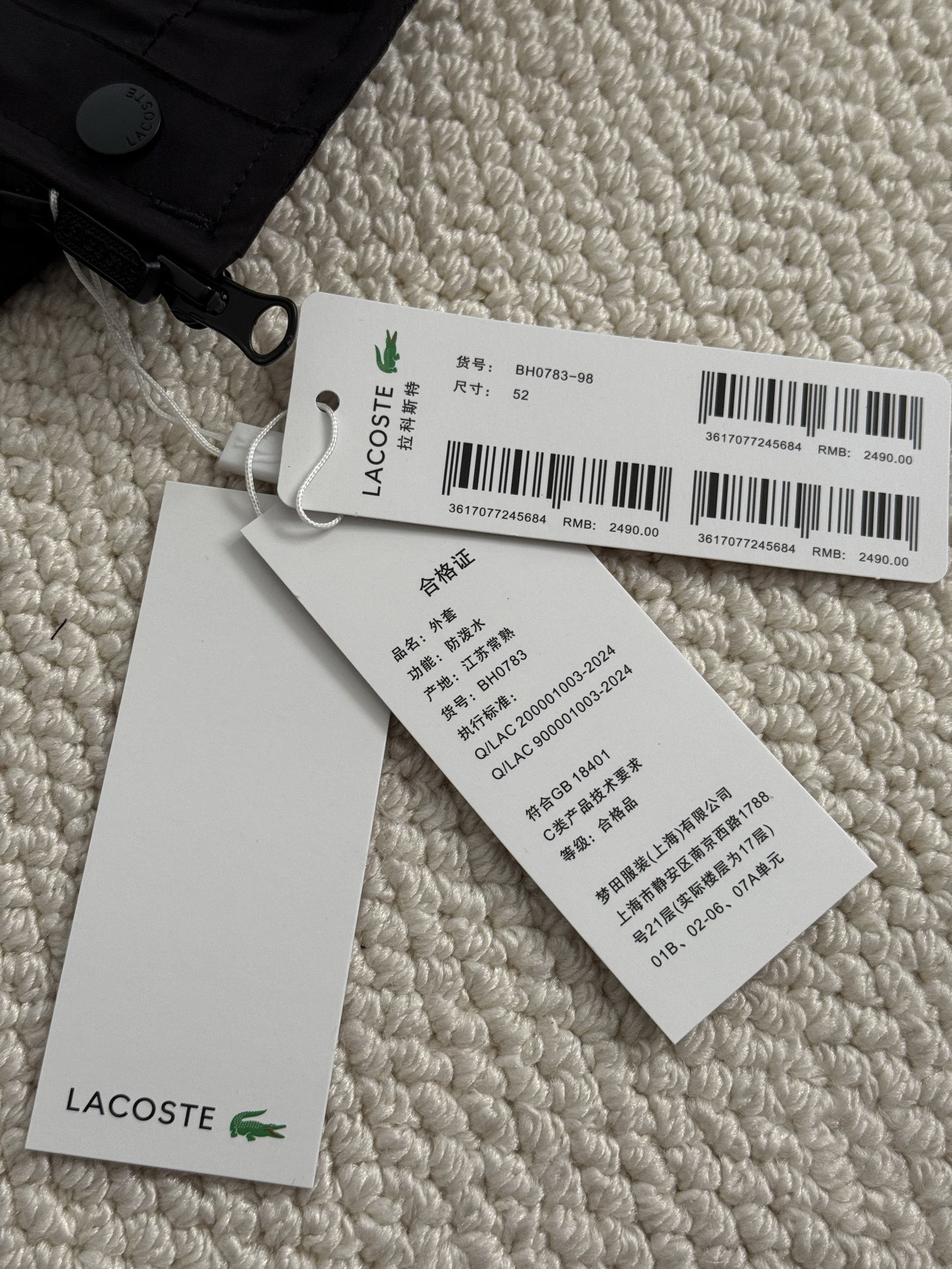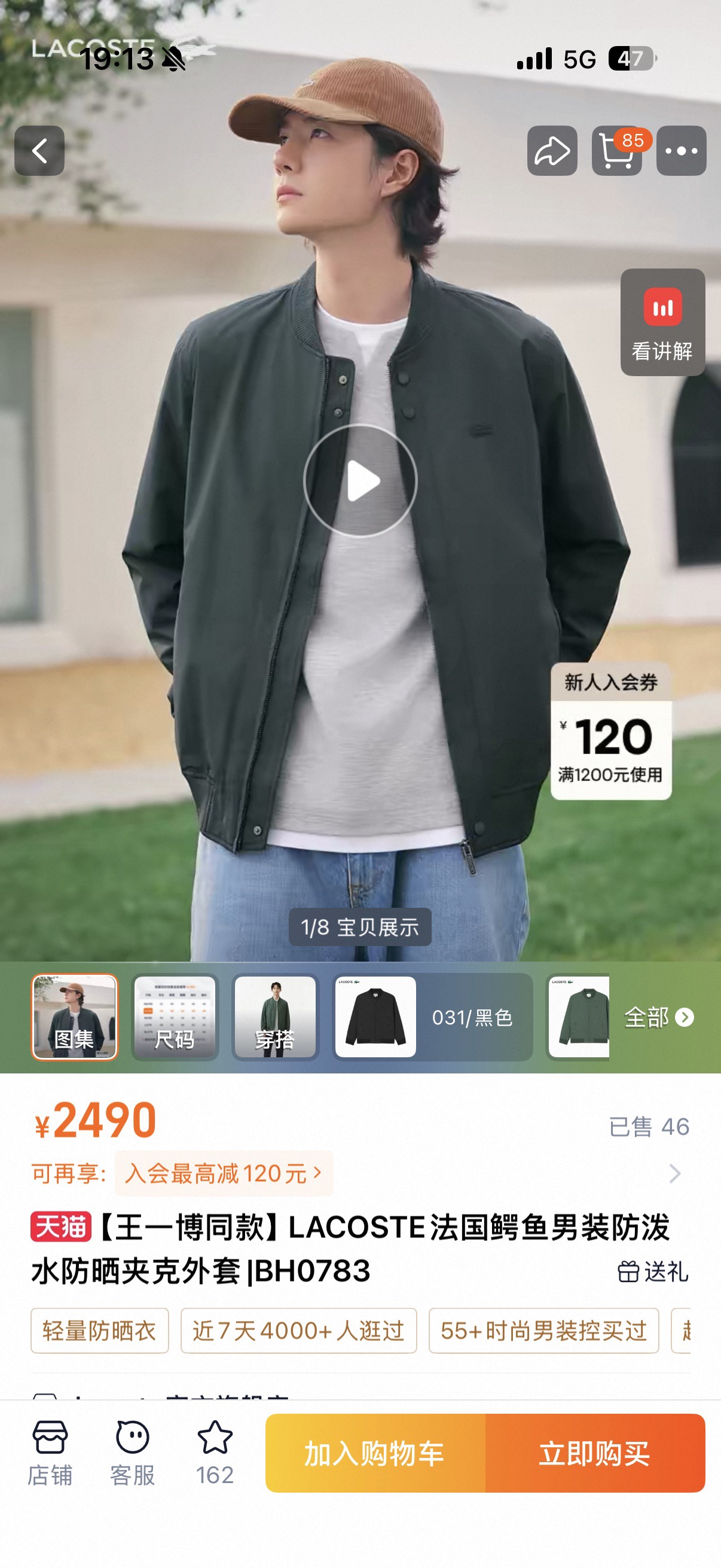 【王一博同款】LACOSTE法国鳄鱼男装防泼水防晒夹克外套|BH0783