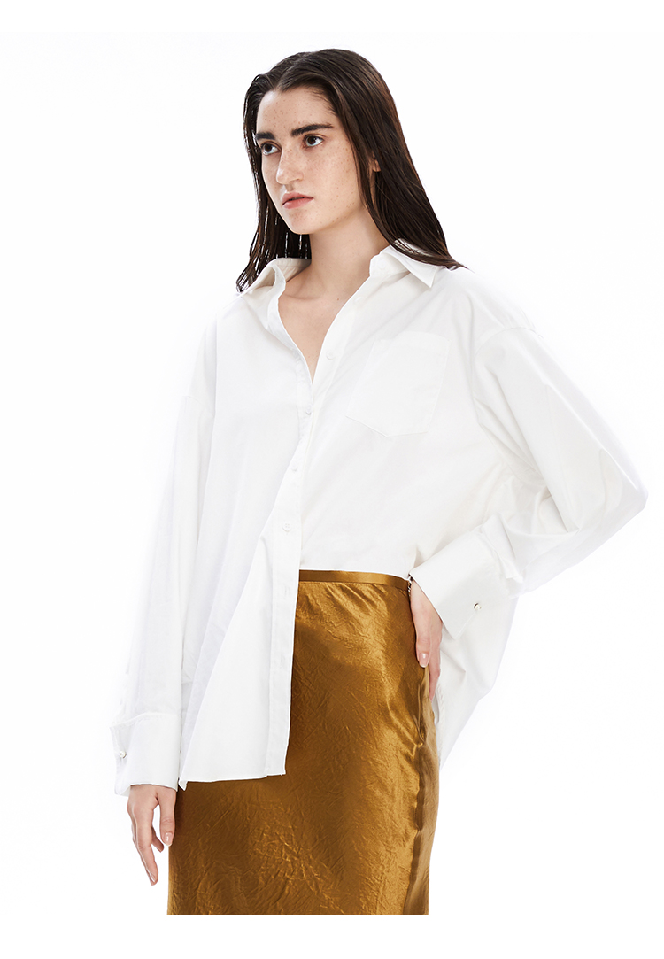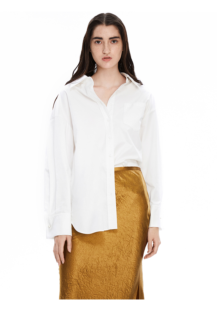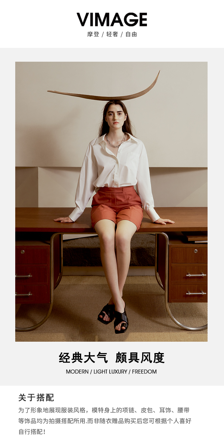 VIMAGE纬漫纪秋冬新款简V领约百搭长袖衬衫衬衣女上衣V1609213