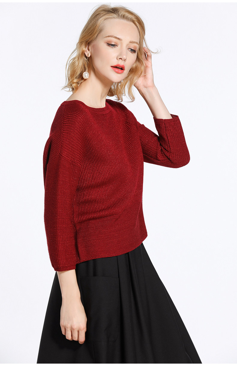 乔万尼羊毛针织衫女 春冬季新款宽松大码长袖上衣套头短款毛衣EB3M297