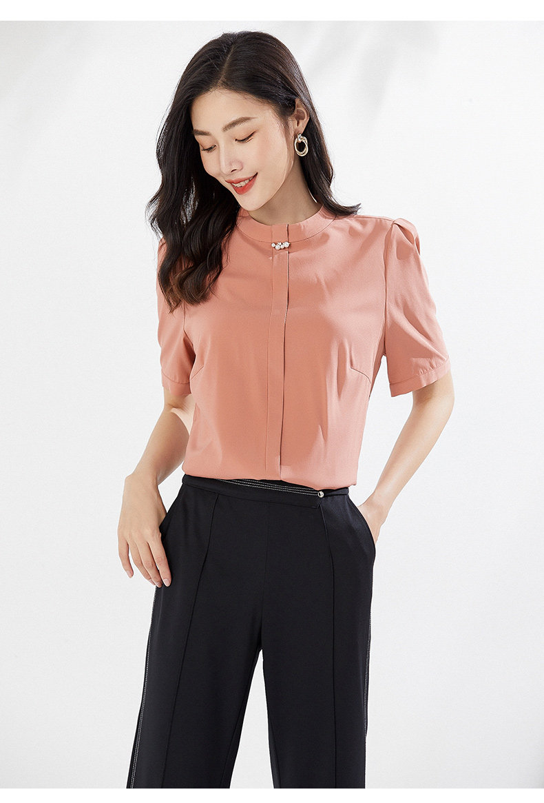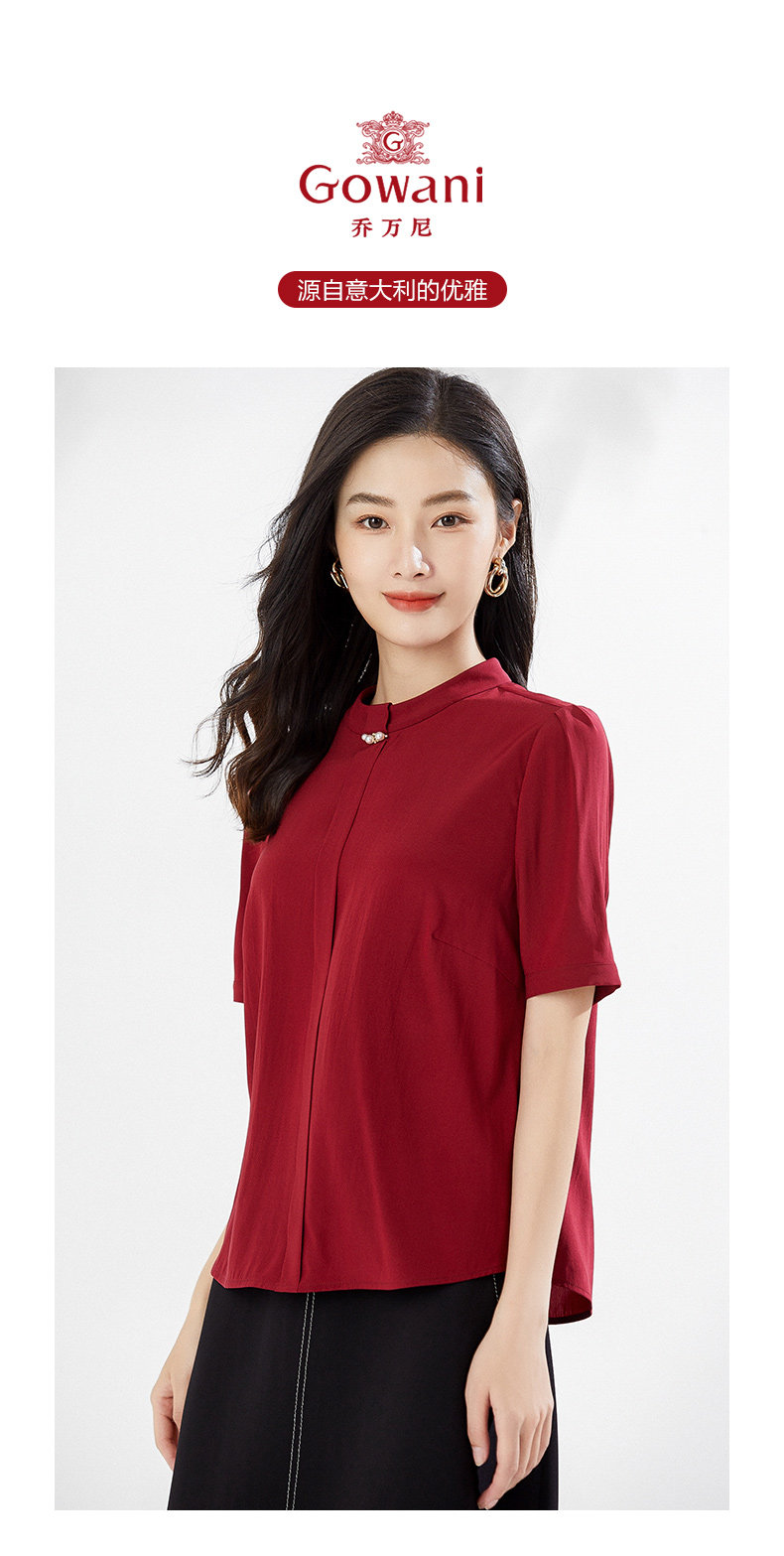 乔万尼重磅真丝短袖衬衫女夏薄款桑蚕丝衬衣EI2C873