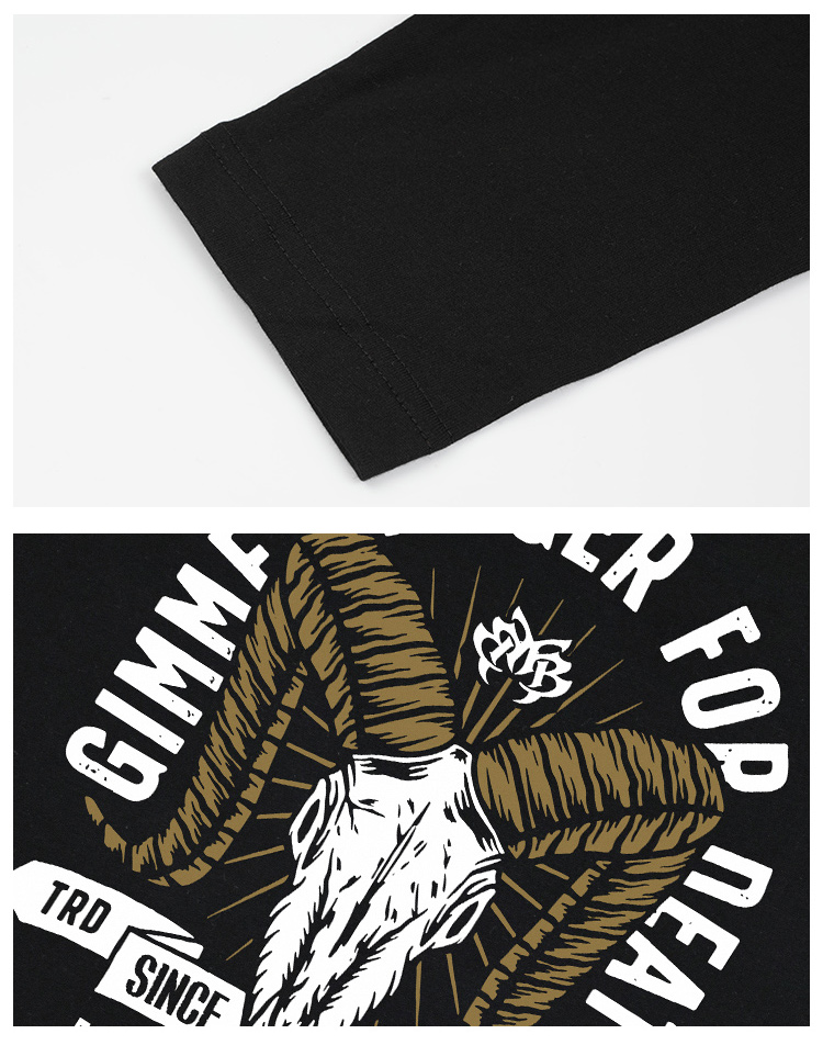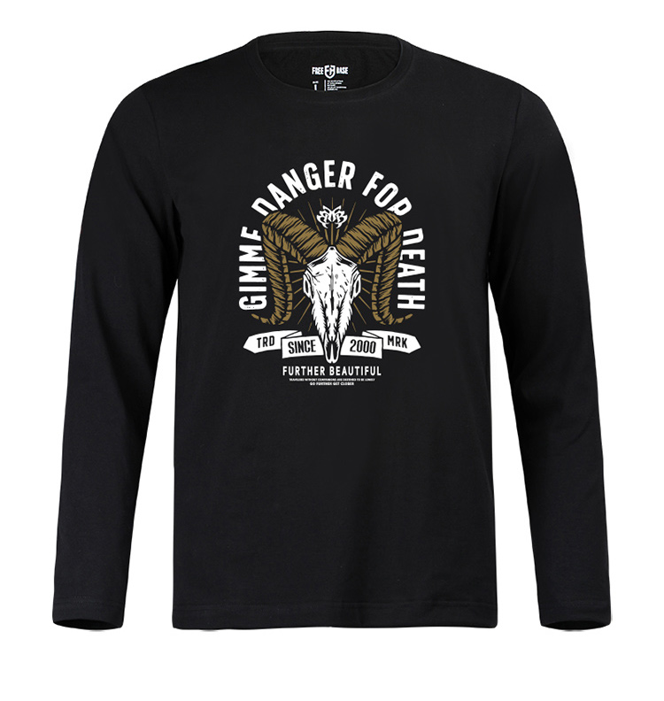 FB日系欧美复古山羊头印花秋冬长袖T恤打底衫机车风简约休闲衫 NMT-1737