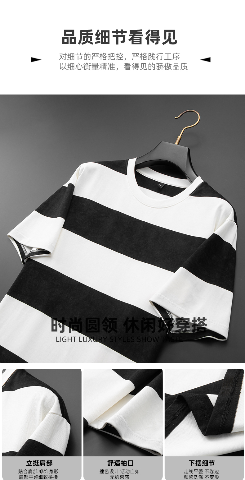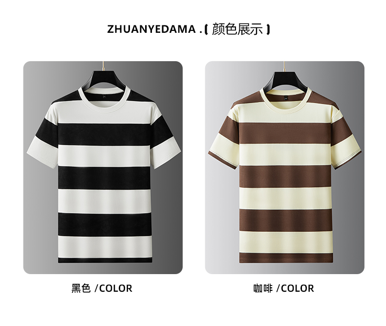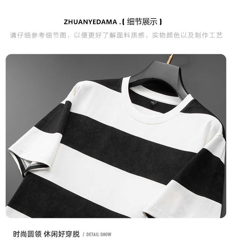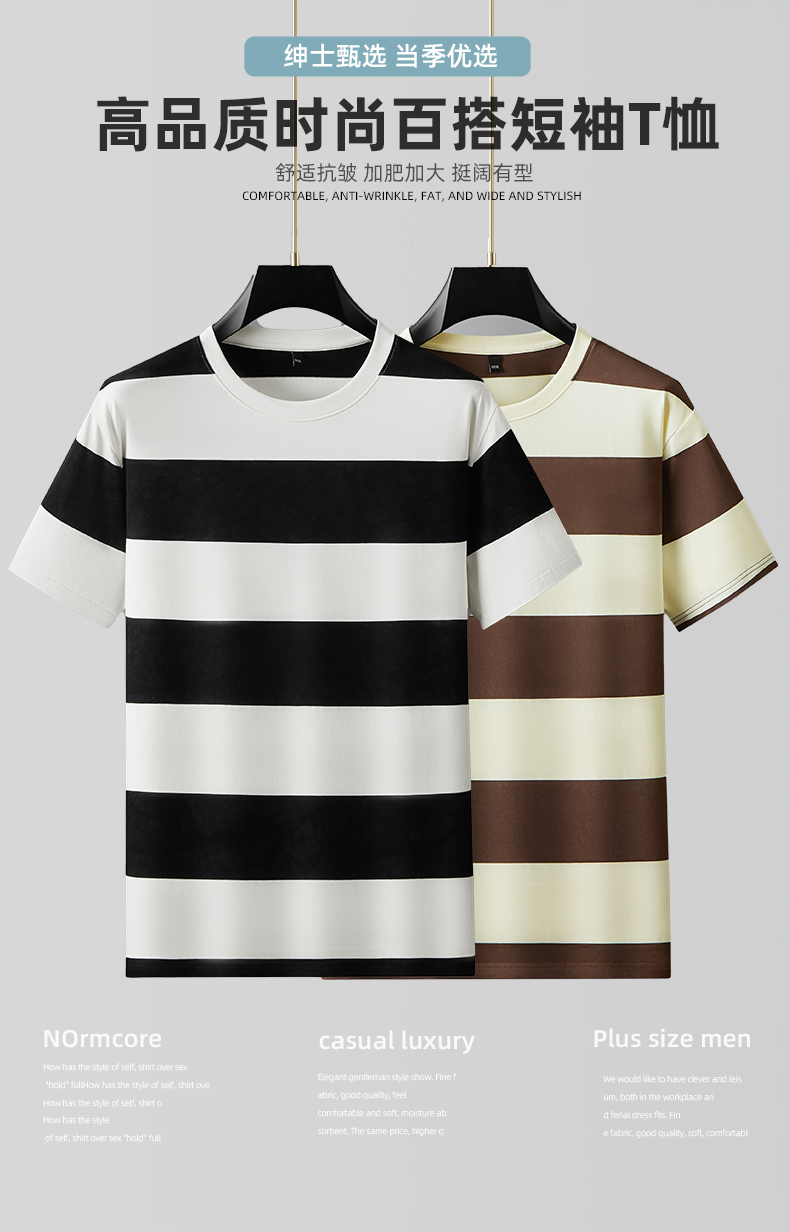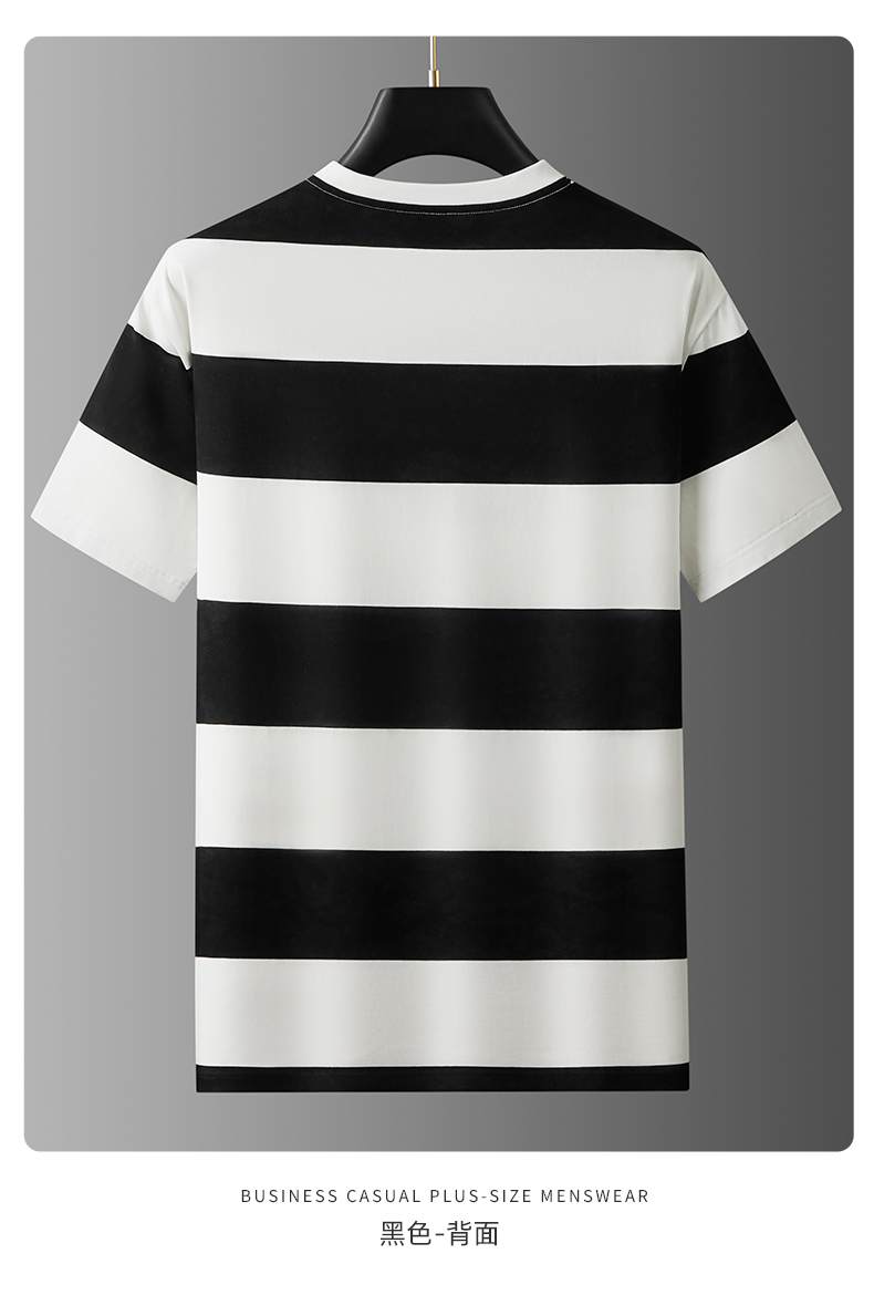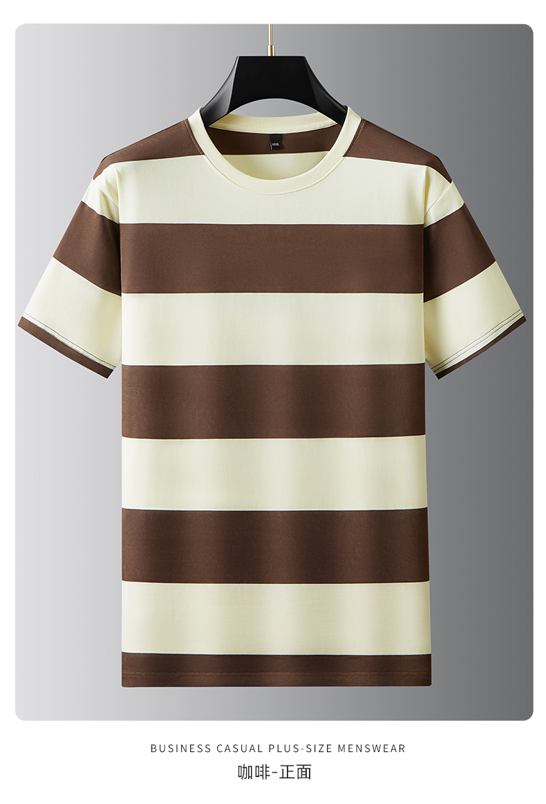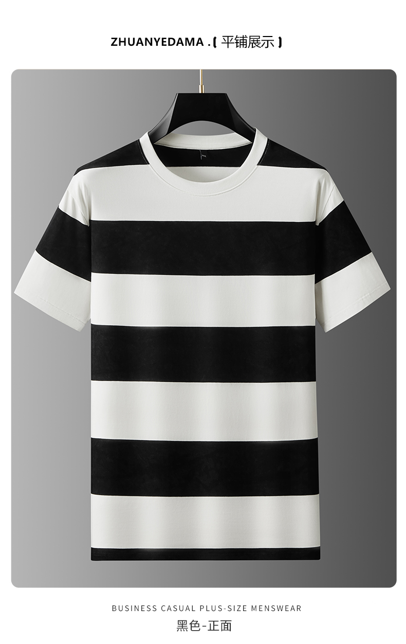 【棉质】【DDA】大依优型大码圆领短袖T恤条纹休闲透气半袖夏季上衣男士胖子潮流