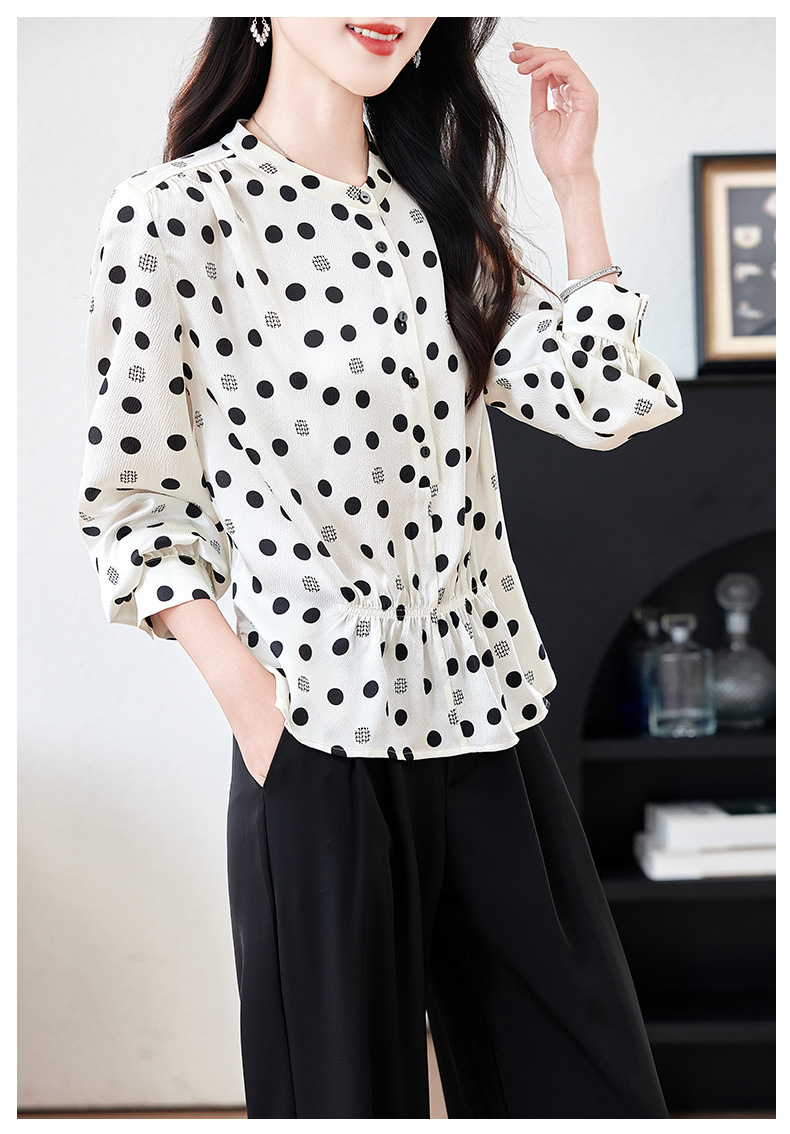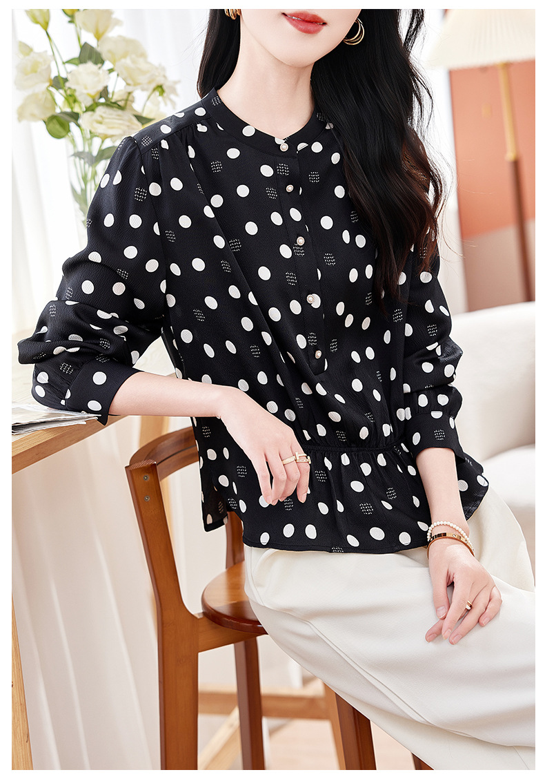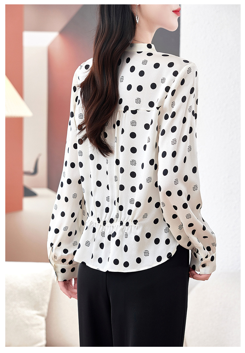 丁摩重磅真丝衬衫女新款印花波点长袖桑蚕丝上衣AL0571 商品图4