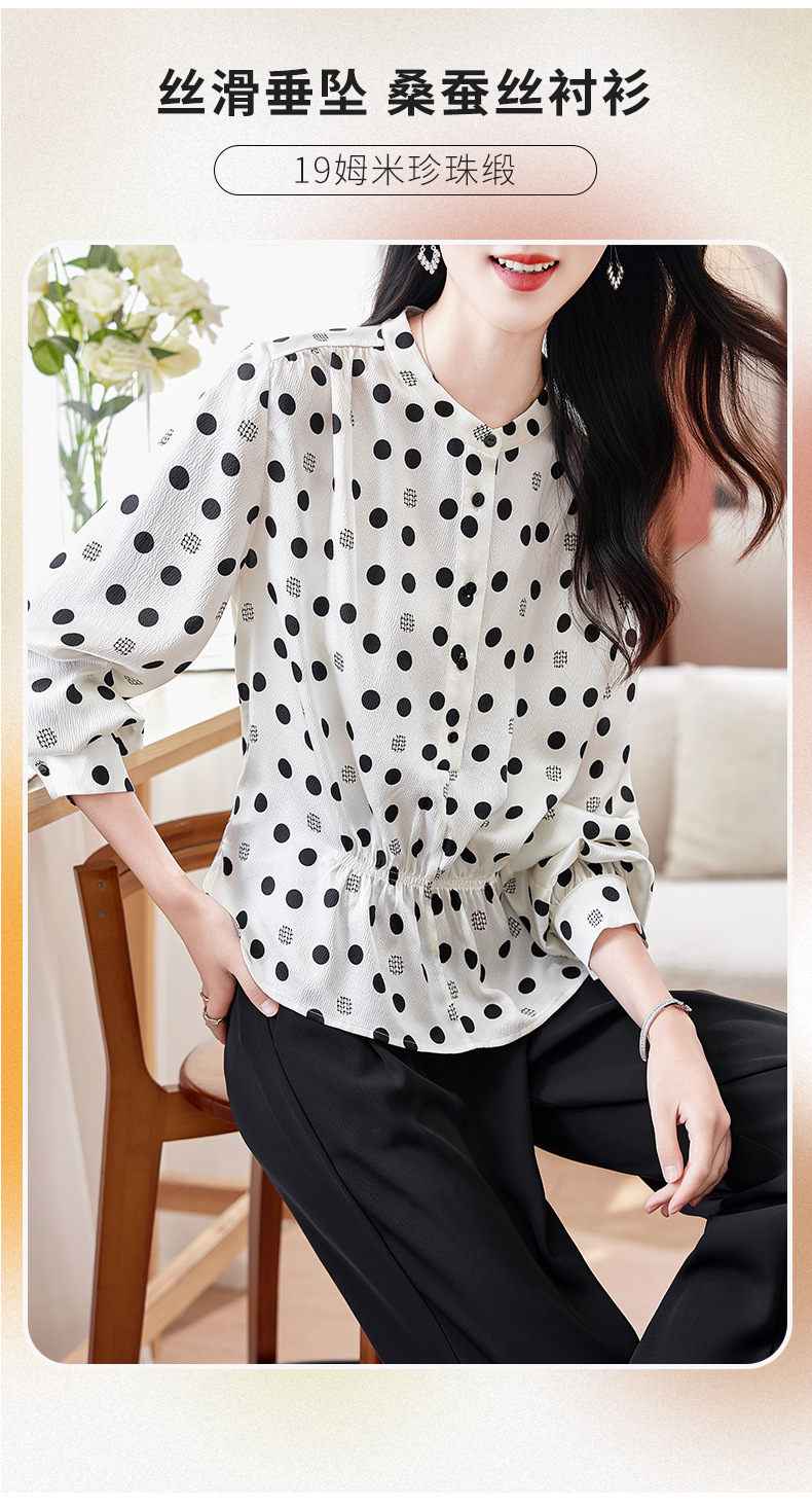 丁摩重磅真丝衬衫女新款印花波点长袖桑蚕丝上衣AL0571 商品图1