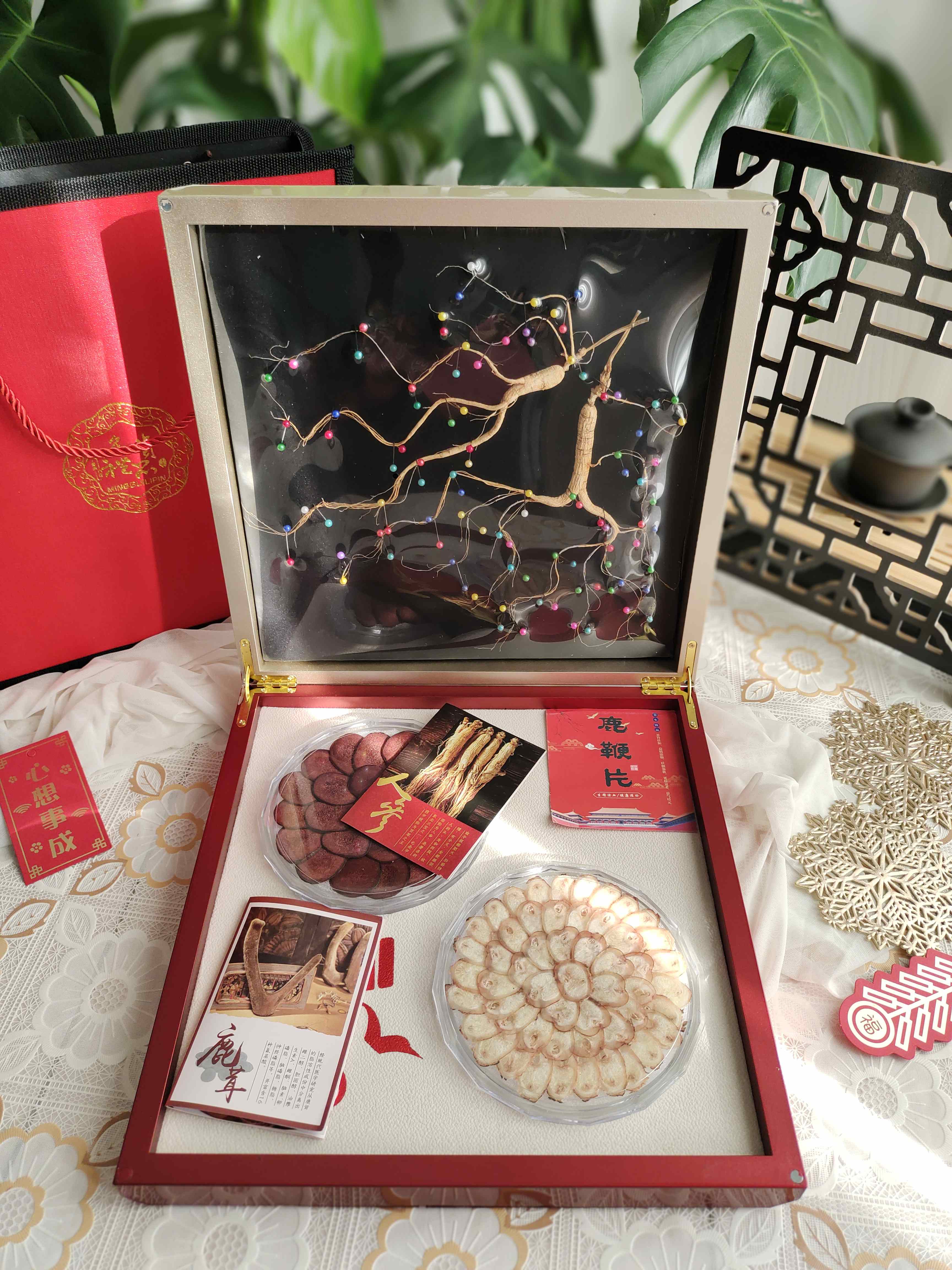 双参吉祥三宝礼盒:20g/支林下参*2支+鹿茸片(13±2g)+鹿鞭片(13±2g)