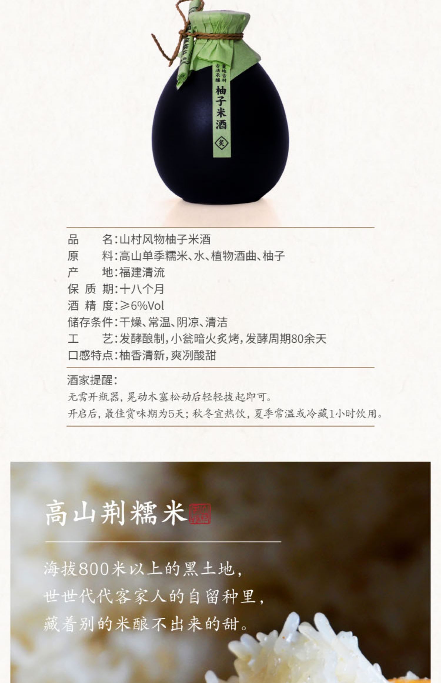 正安优选·山村风物柚子米酒500ml【入口食品不支持7天无理由退货】