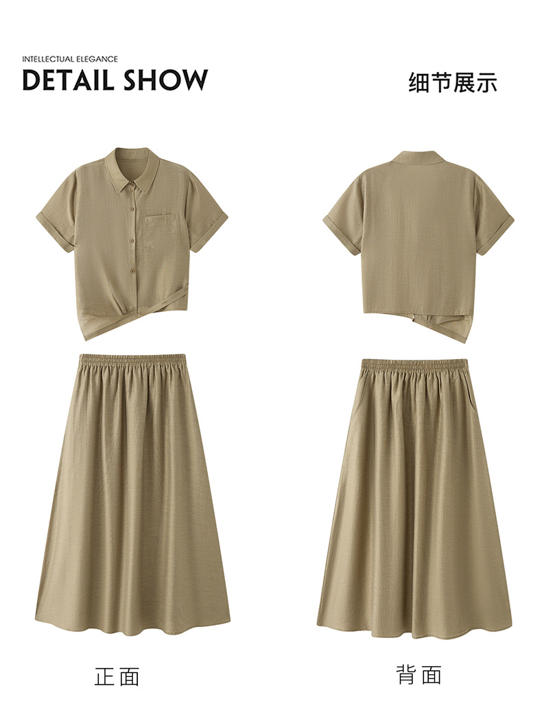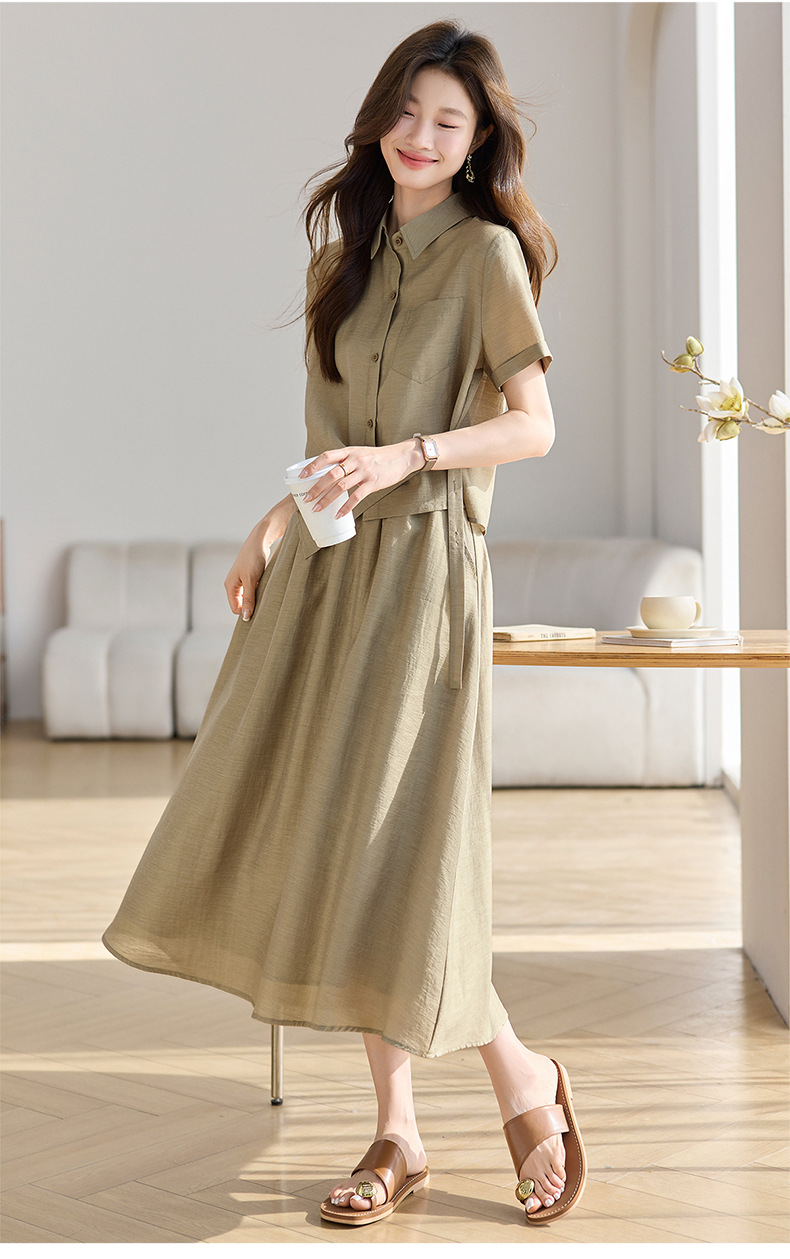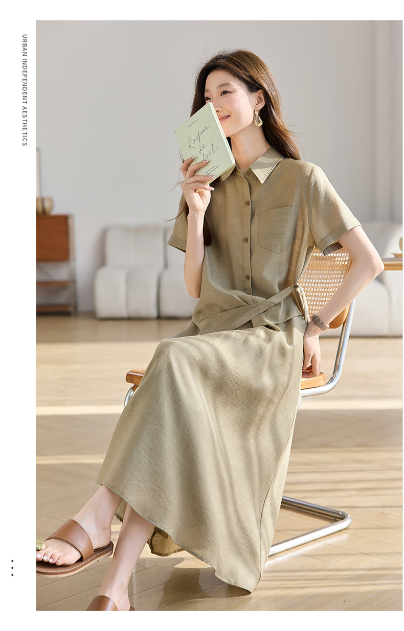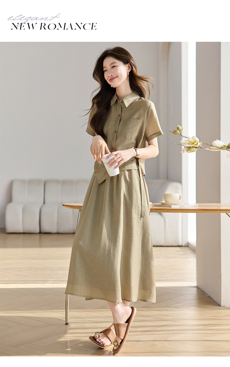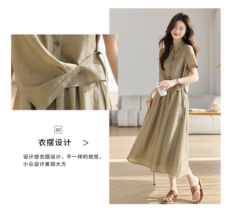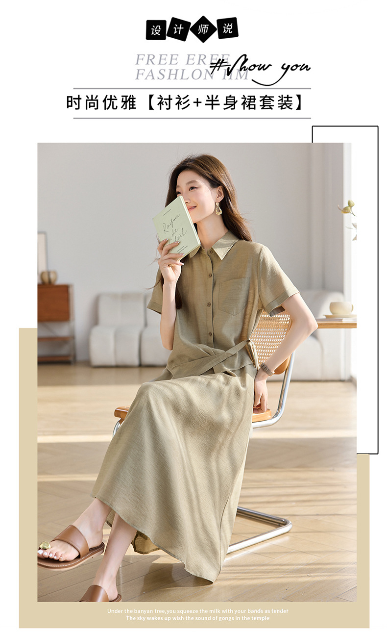 丁摩 天丝休闲连衣裙套装女夏季气质衬衫半身裙两件套5ZF-2571