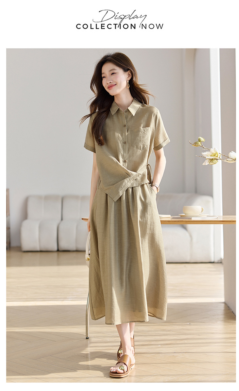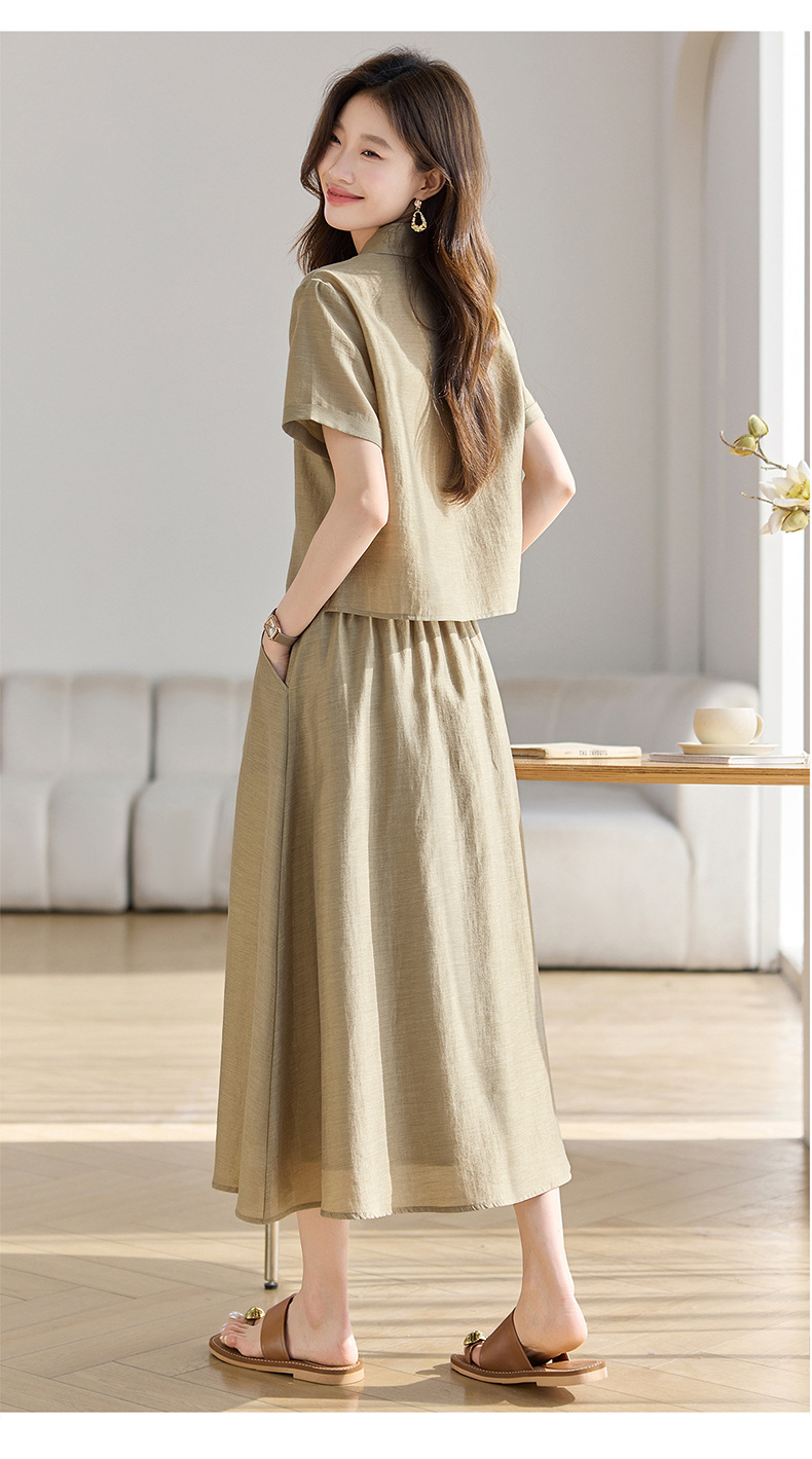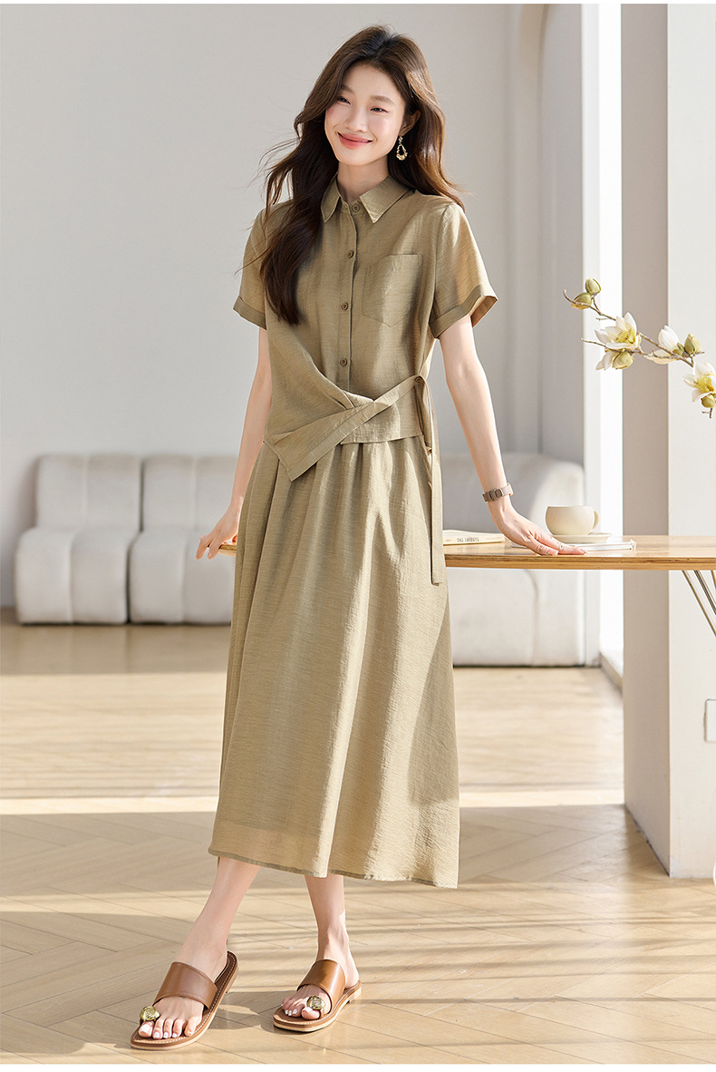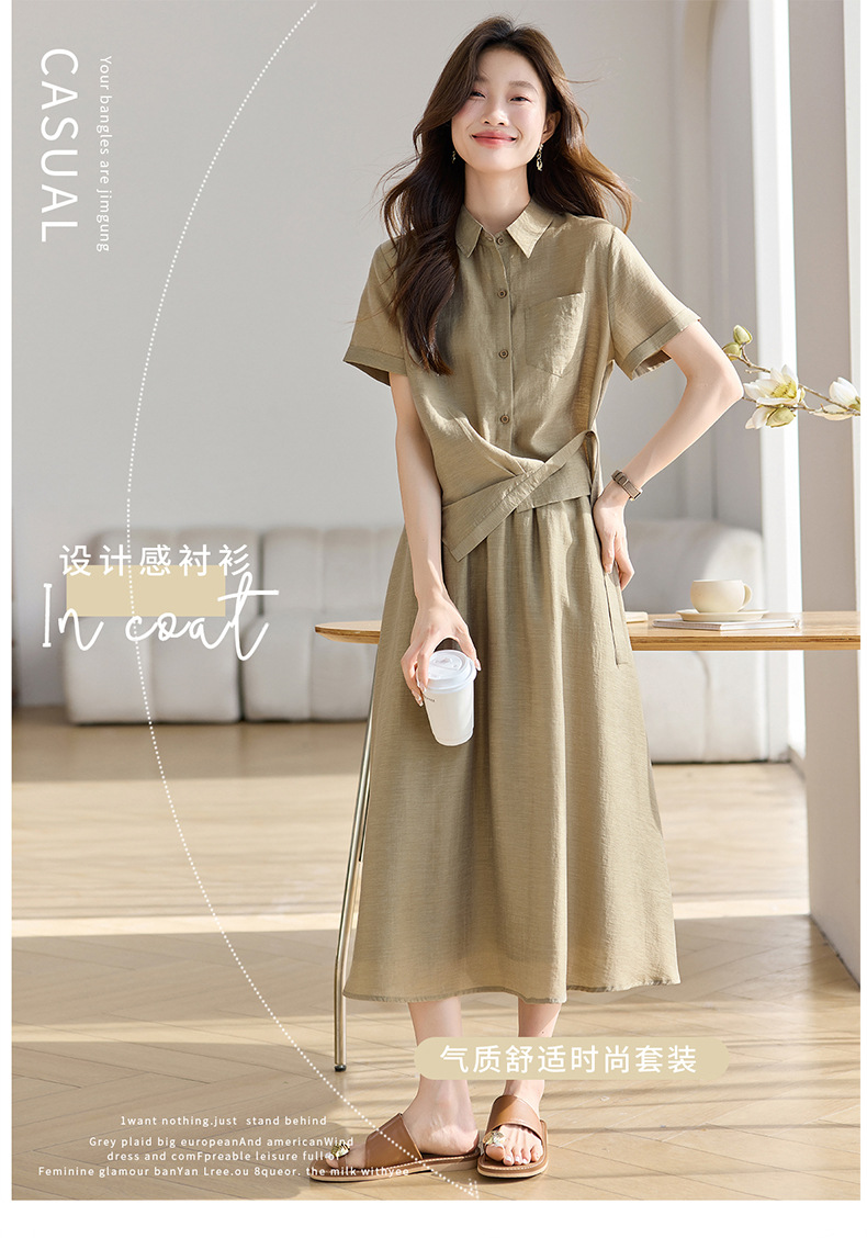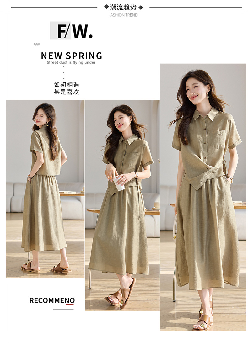 丁摩 天丝休闲连衣裙套装女夏季气质衬衫半身裙两件套5ZF-2571