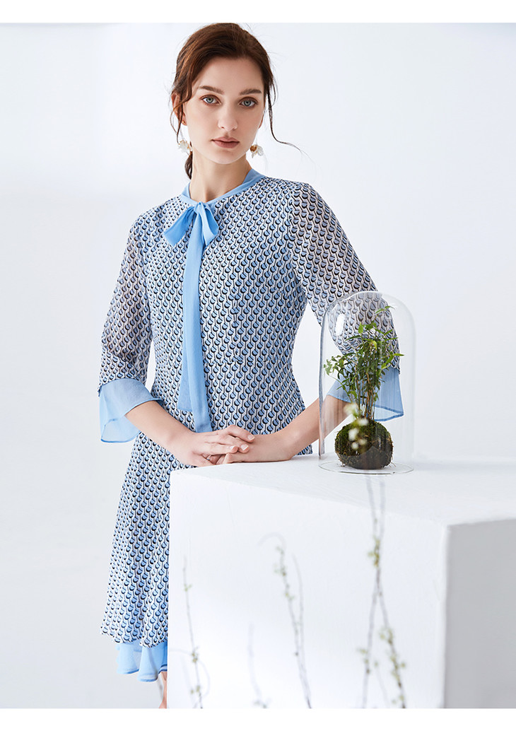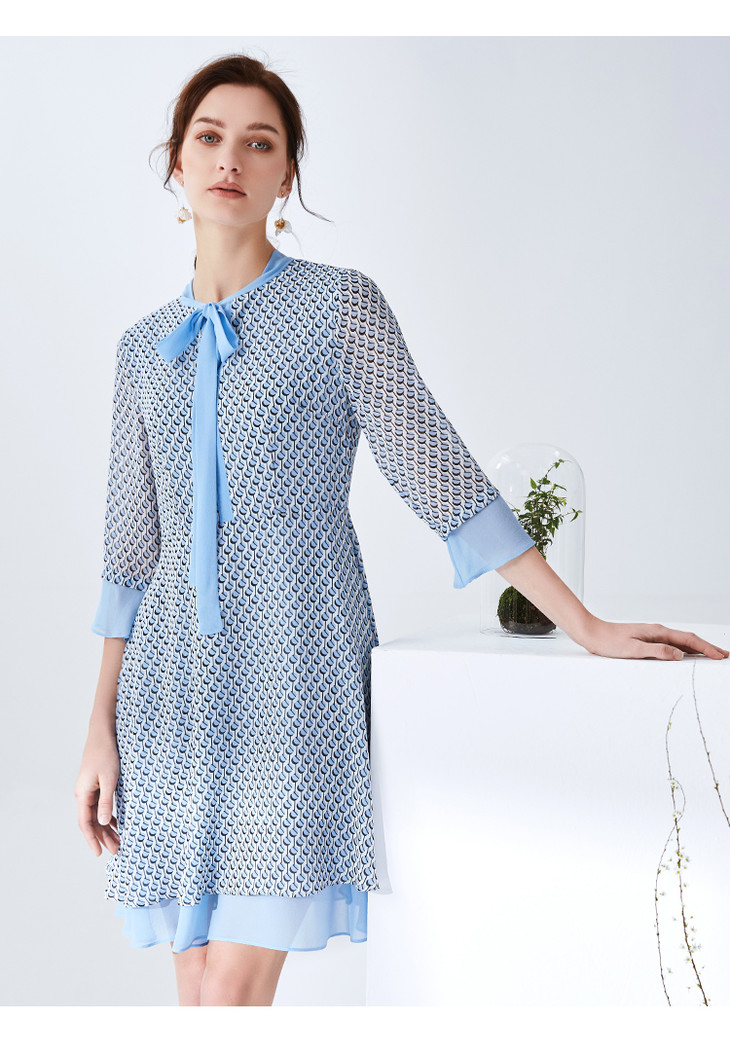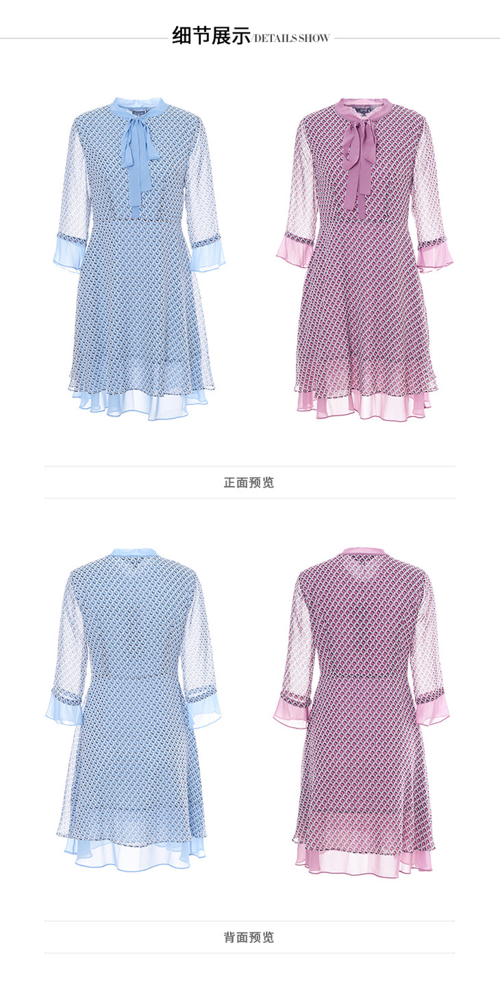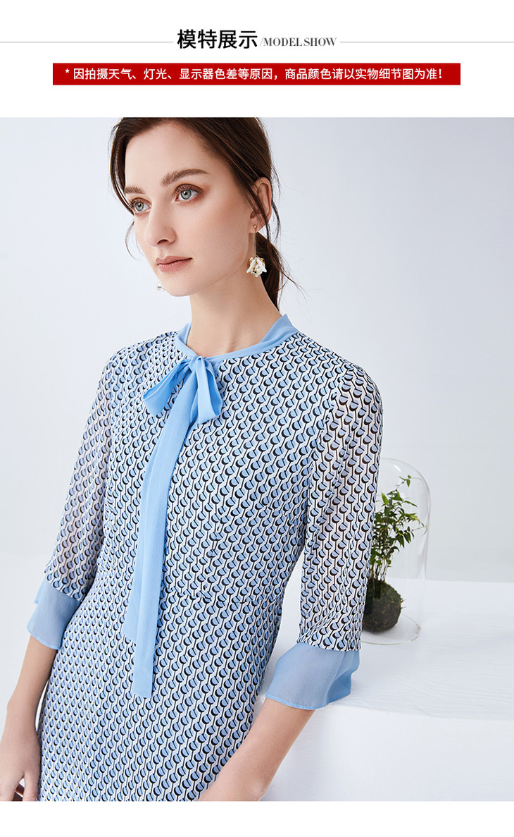 EITIE爱特爱女装蕾丝镂空钩花喇叭七分袖优雅连衣裙D1907319
