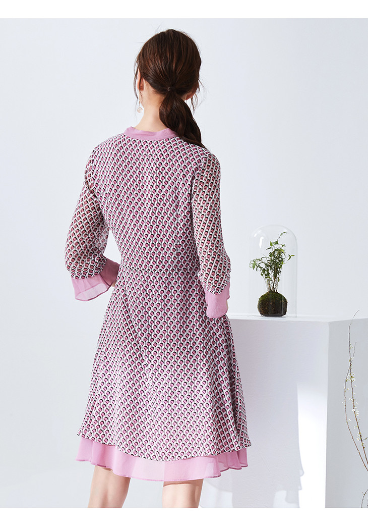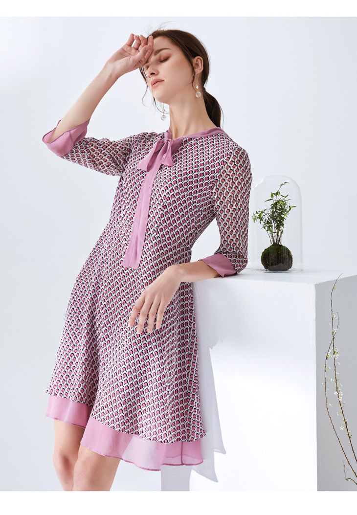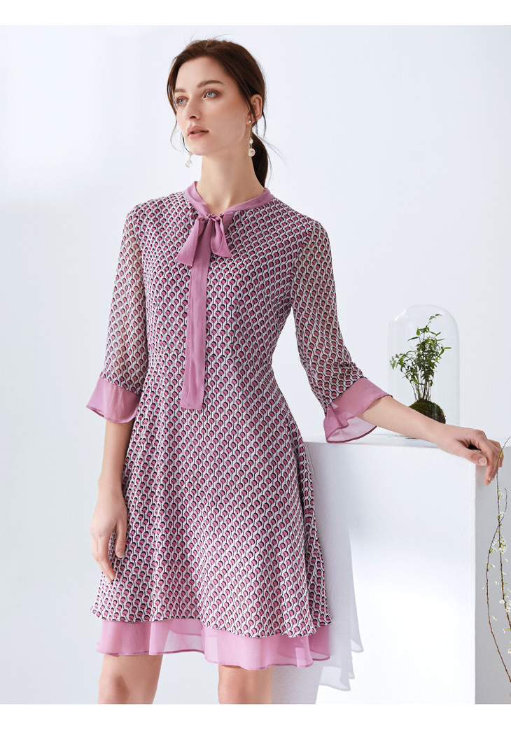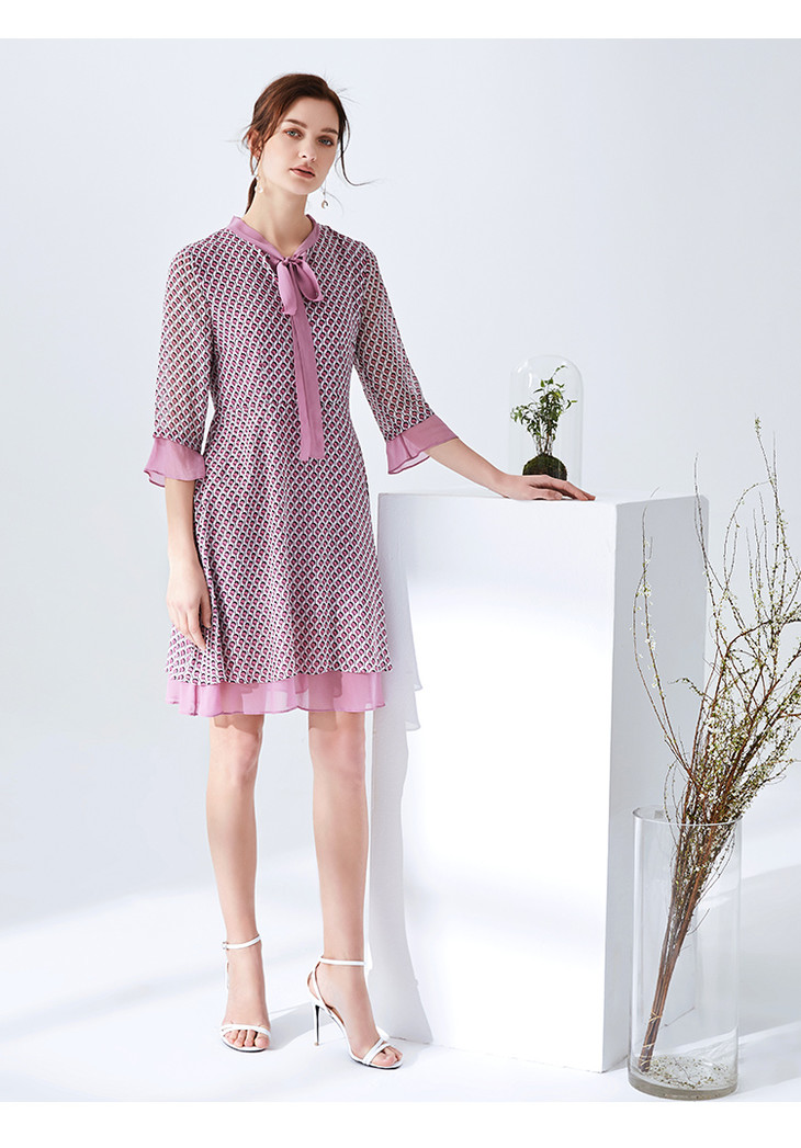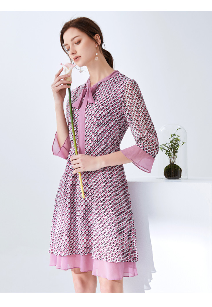 EITIE爱特爱女装蕾丝镂空钩花喇叭七分袖优雅连衣裙D1907319