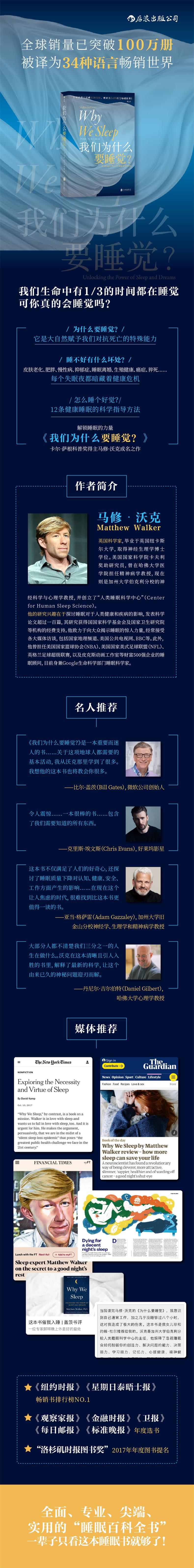 全球销量已突破100万册,被译为34种语言畅销世界!为什么要睡觉,睡不好有什么坏处,怎么睡个好觉,一切答案尽在其中。