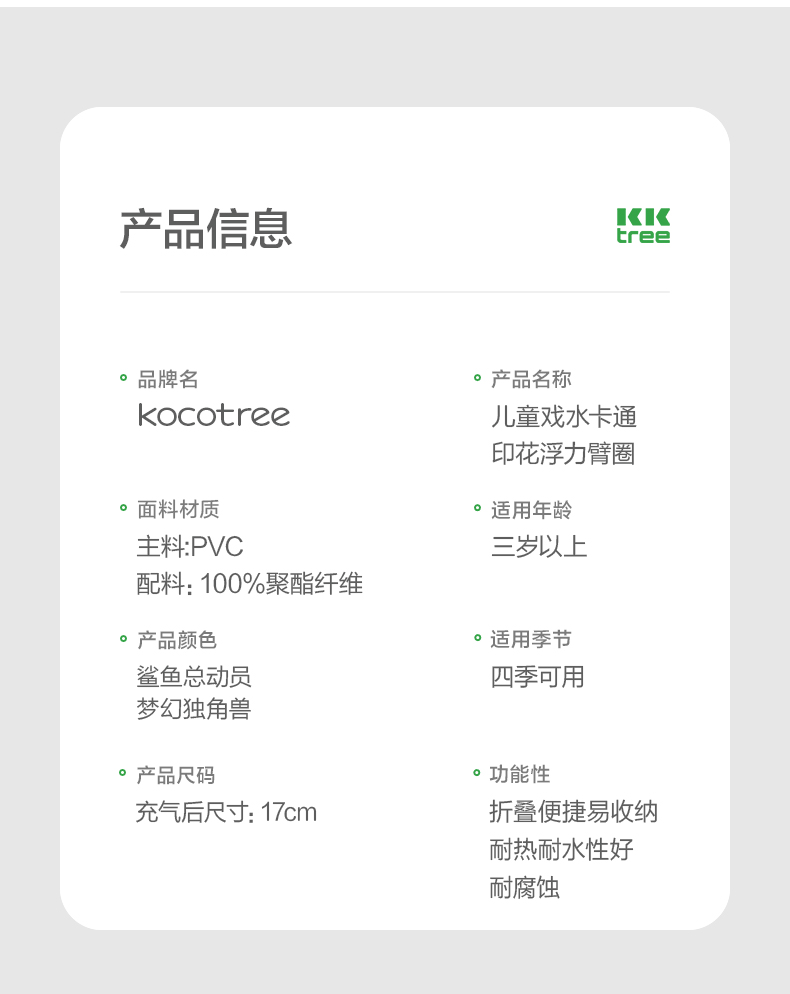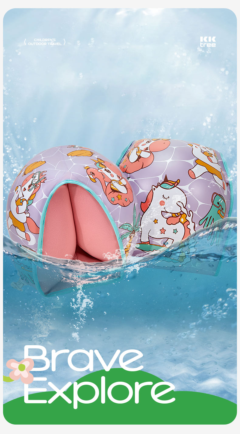 KK树儿童游泳圈宝宝手臂圈男女孩游泳装备水袖浮力圈泳袖浮漂神器儿童戏水卡通印花浮力臂圈