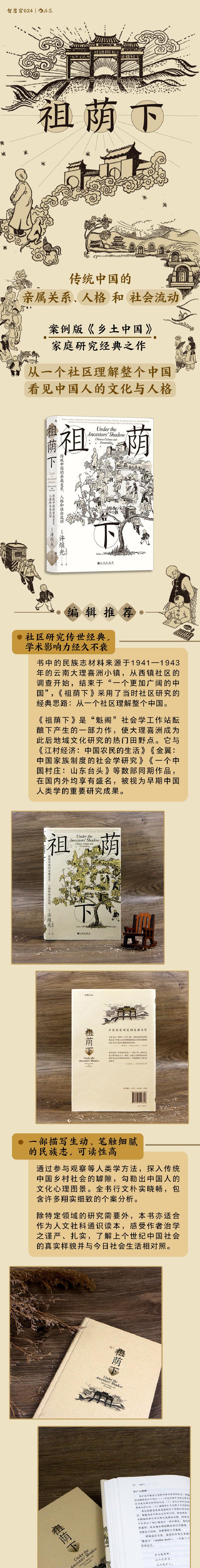 书中的民族志材料来源于1941—1943年的云南大理喜洲小镇,从西镇社区的调查开始,结束于“一个更加广阔的中国”,《祖荫下》采用了当时社区研究的典思路:从一个社区理解整个中国。其时,以燕京学派为主的大量实地调查都是在这个脉络中进行的。《祖荫下》是“魁阁”社会学工作站酝酿下产生的一部力作,使大理喜洲成为此后地域文化研究的热门田野点。它与《江村经济:中国农民的生活》《金翼:中国家族制度的社会学研究》《一个中国村庄:山东台头》等数部同期作品,在国内外均享有盛名,被视为早期中国人类学的重要研究成果。