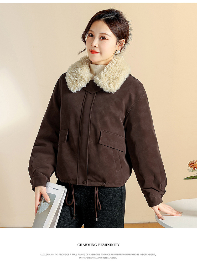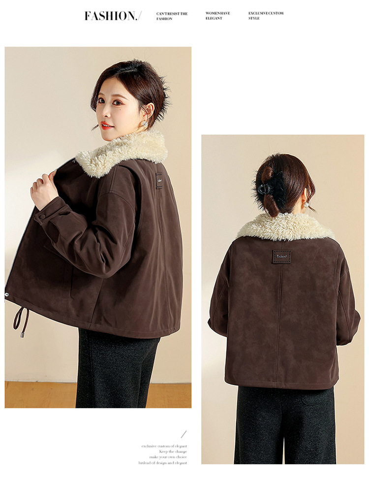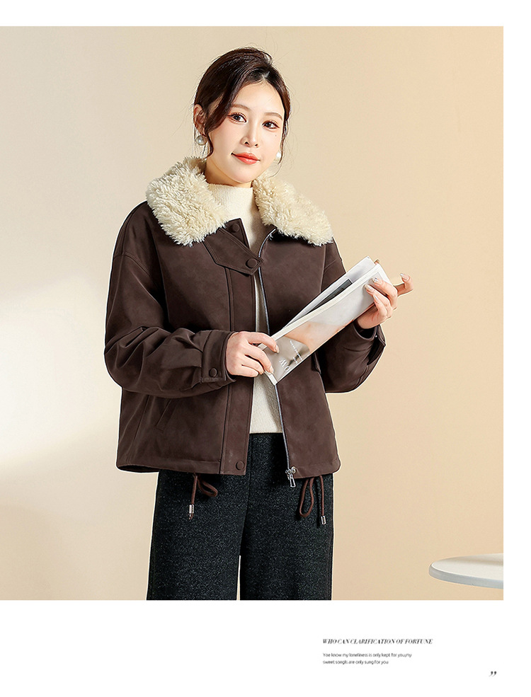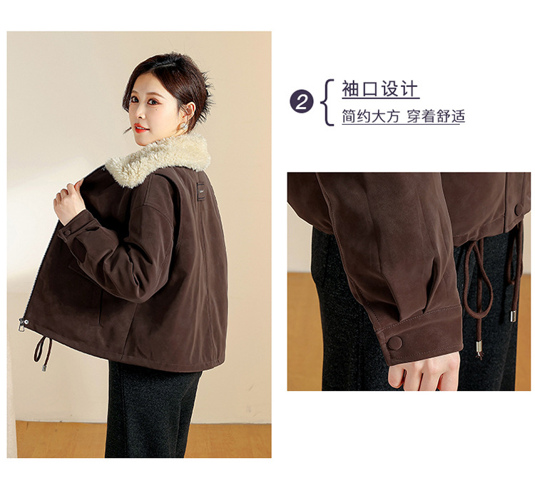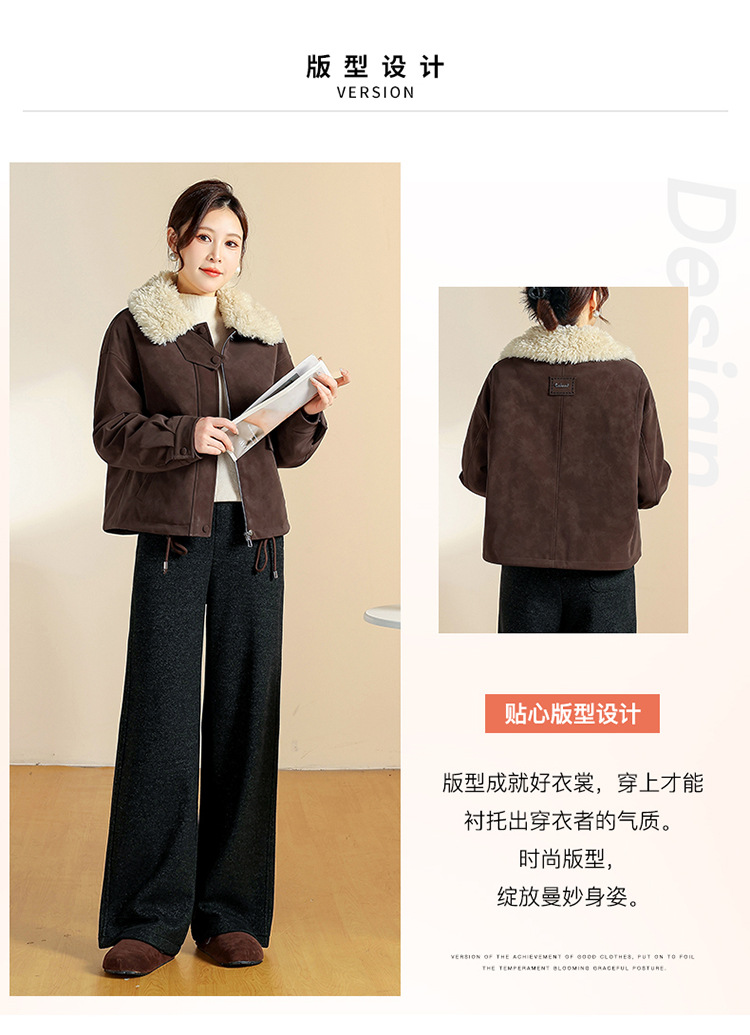 QYM CS25D102洋气鹿皮绒加绒加厚短外套时尚小个子羊羔毛显瘦上衣 商品图2