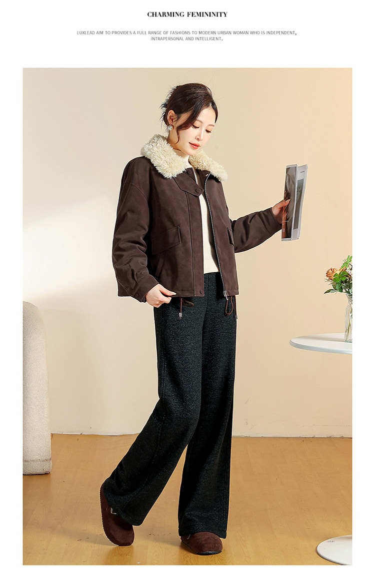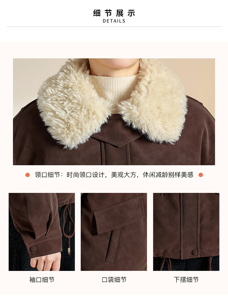 QYM CS25D102洋气鹿皮绒加绒加厚短外套时尚小个子羊羔毛显瘦上衣 商品图4