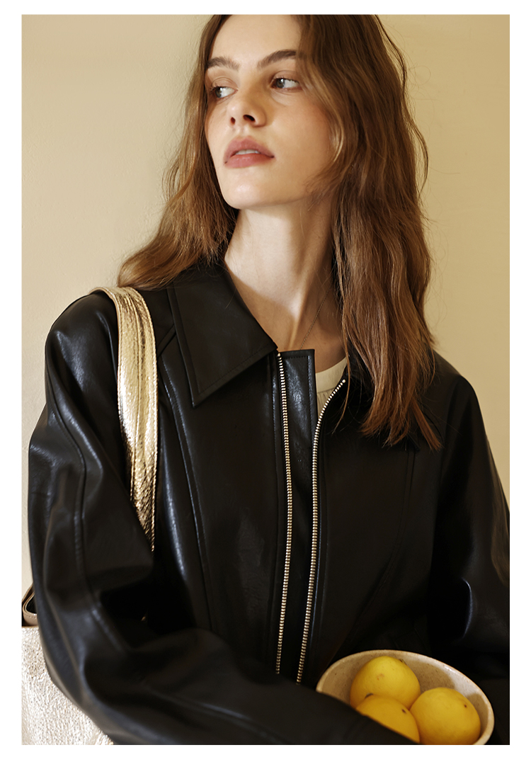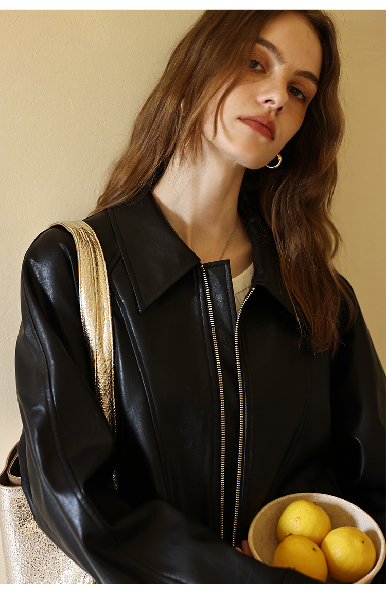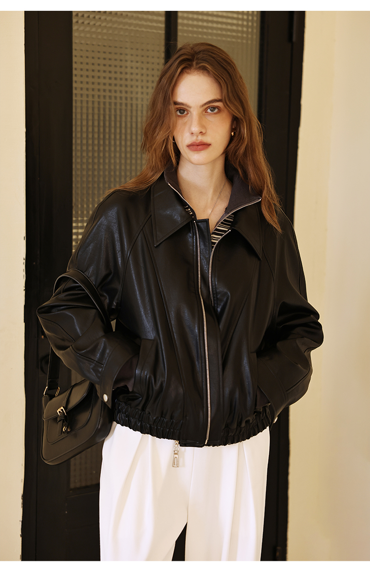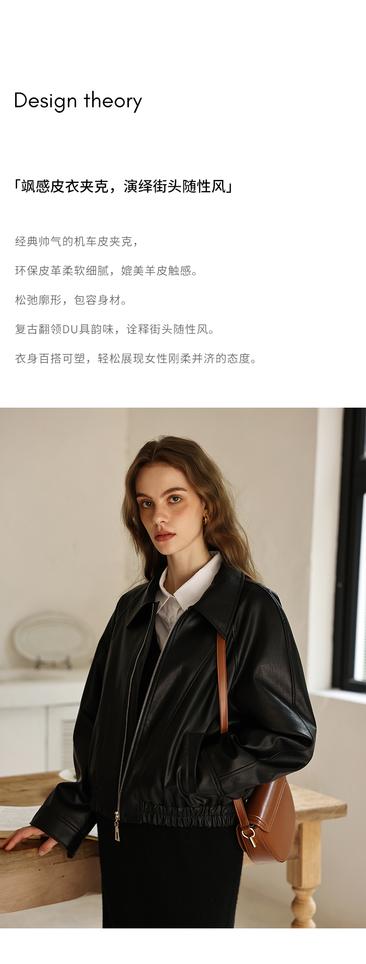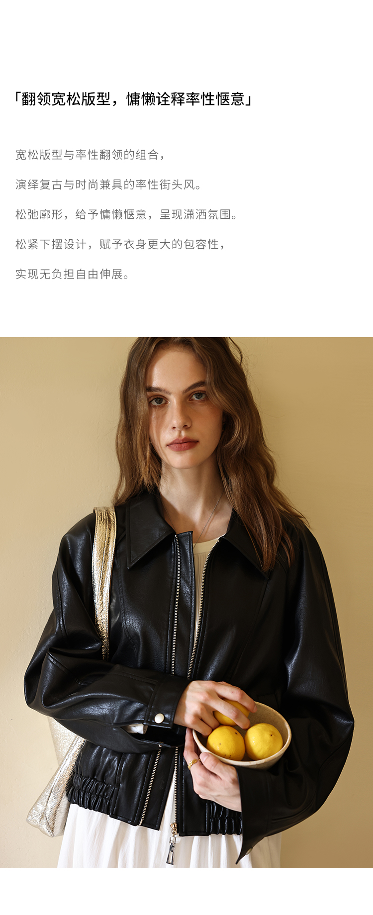 HeyDress黑色皮衣外套女秋季宽松显瘦机车风pu皮夹克短款休闲上衣