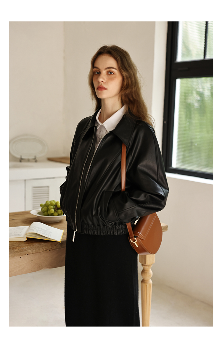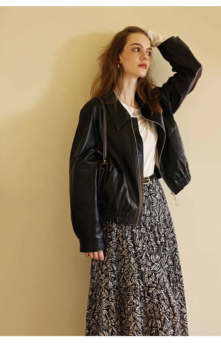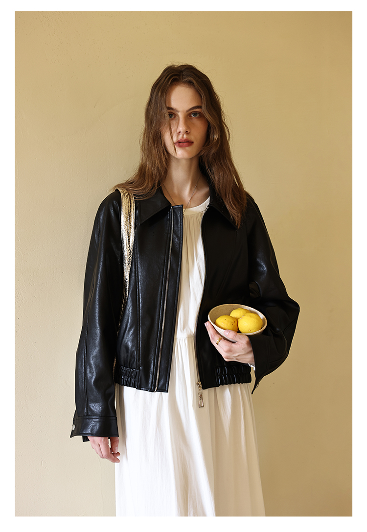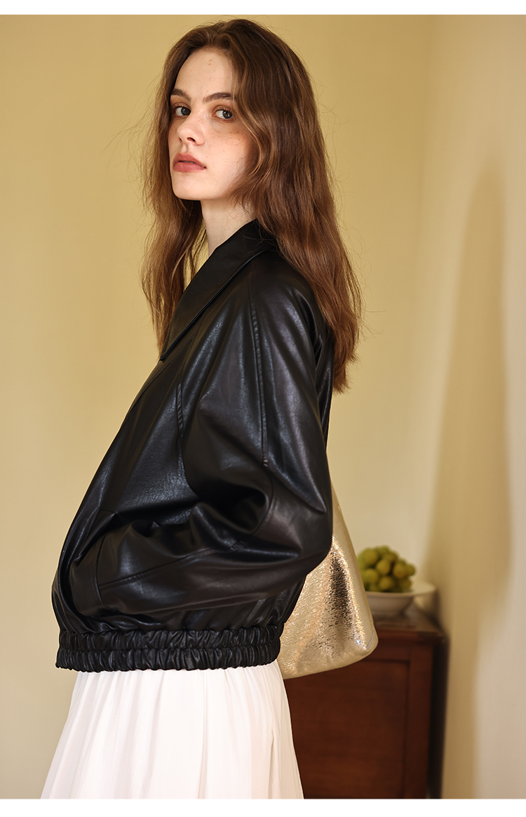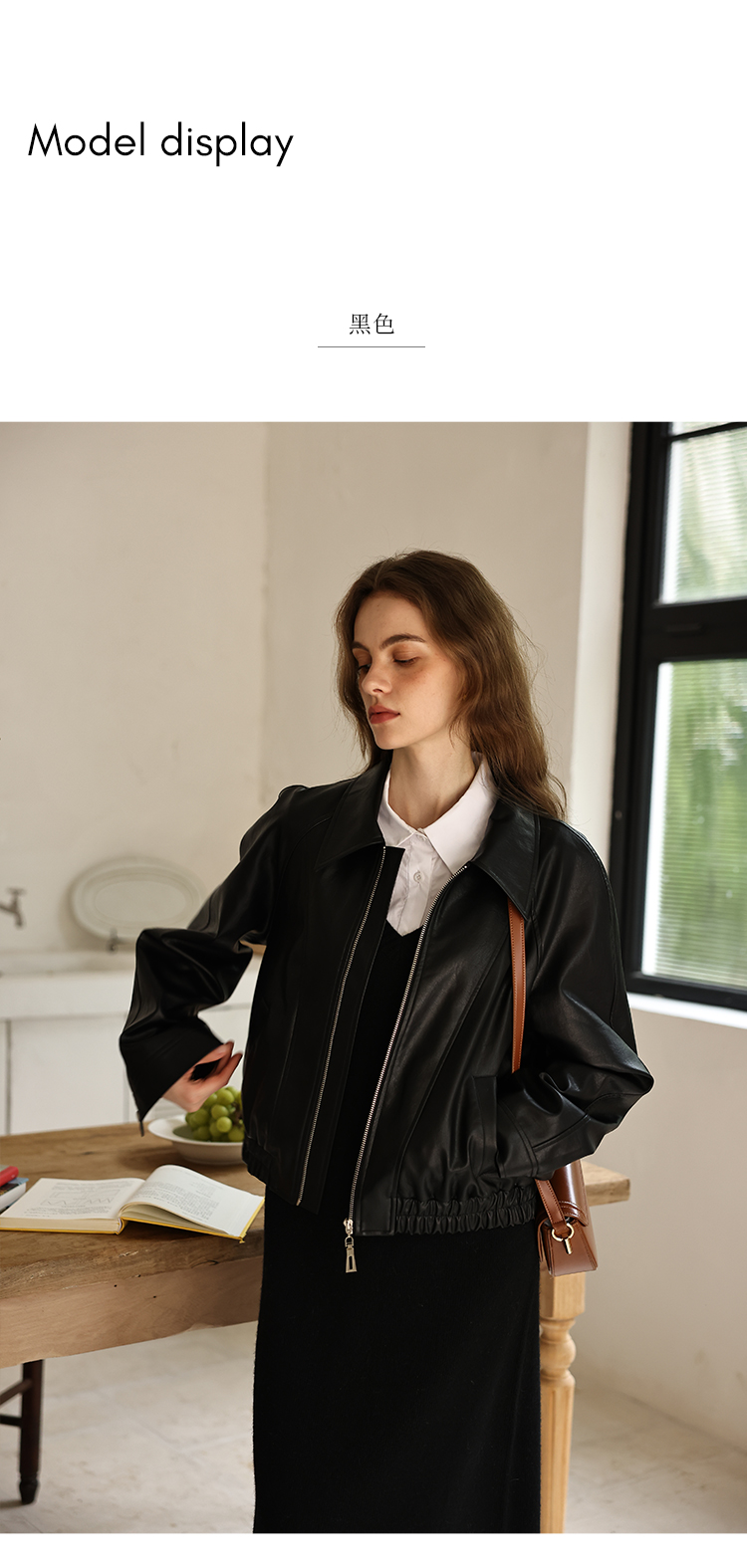 HeyDress黑色皮衣外套女秋季宽松显瘦机车风pu皮夹克短款休闲上衣
