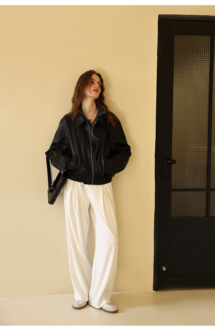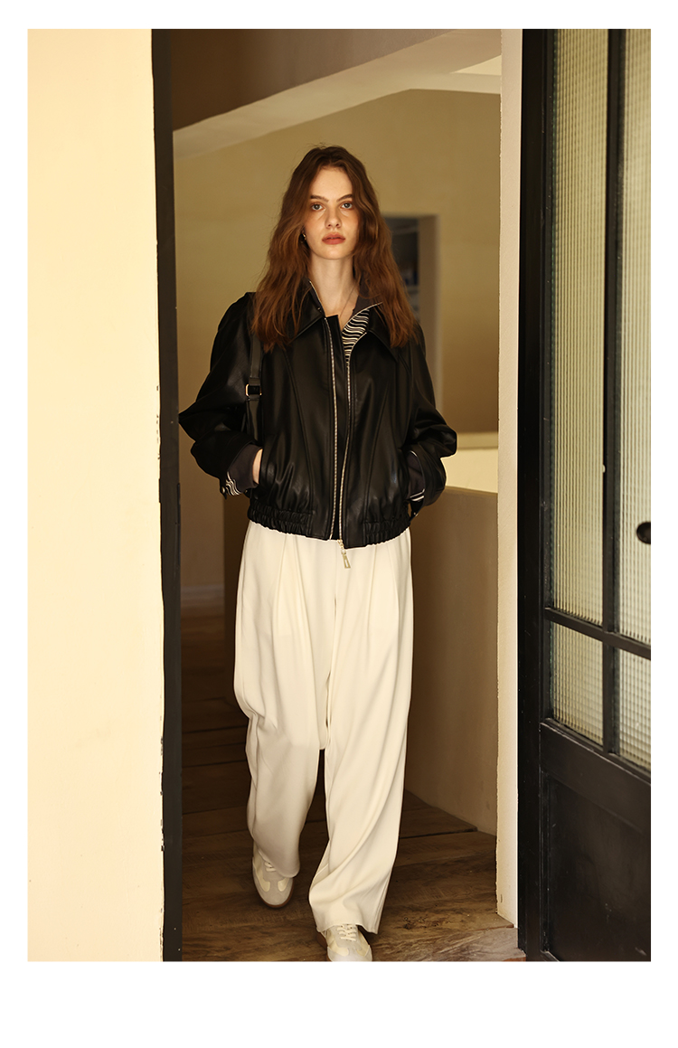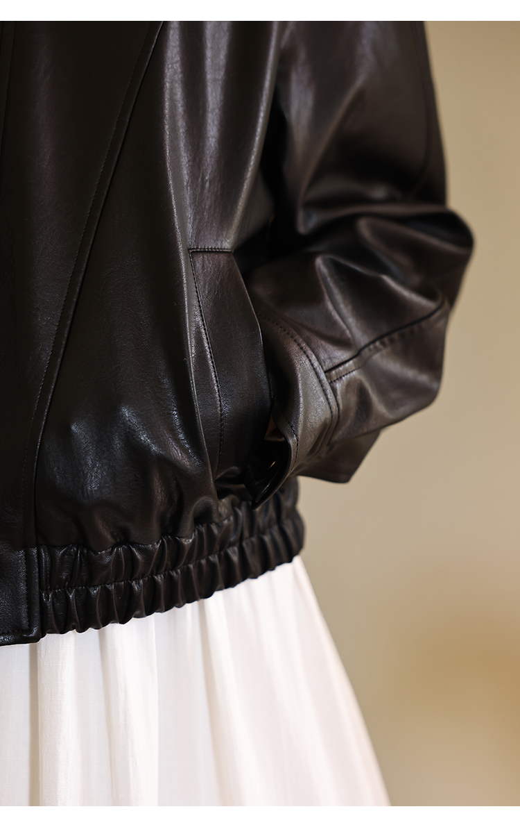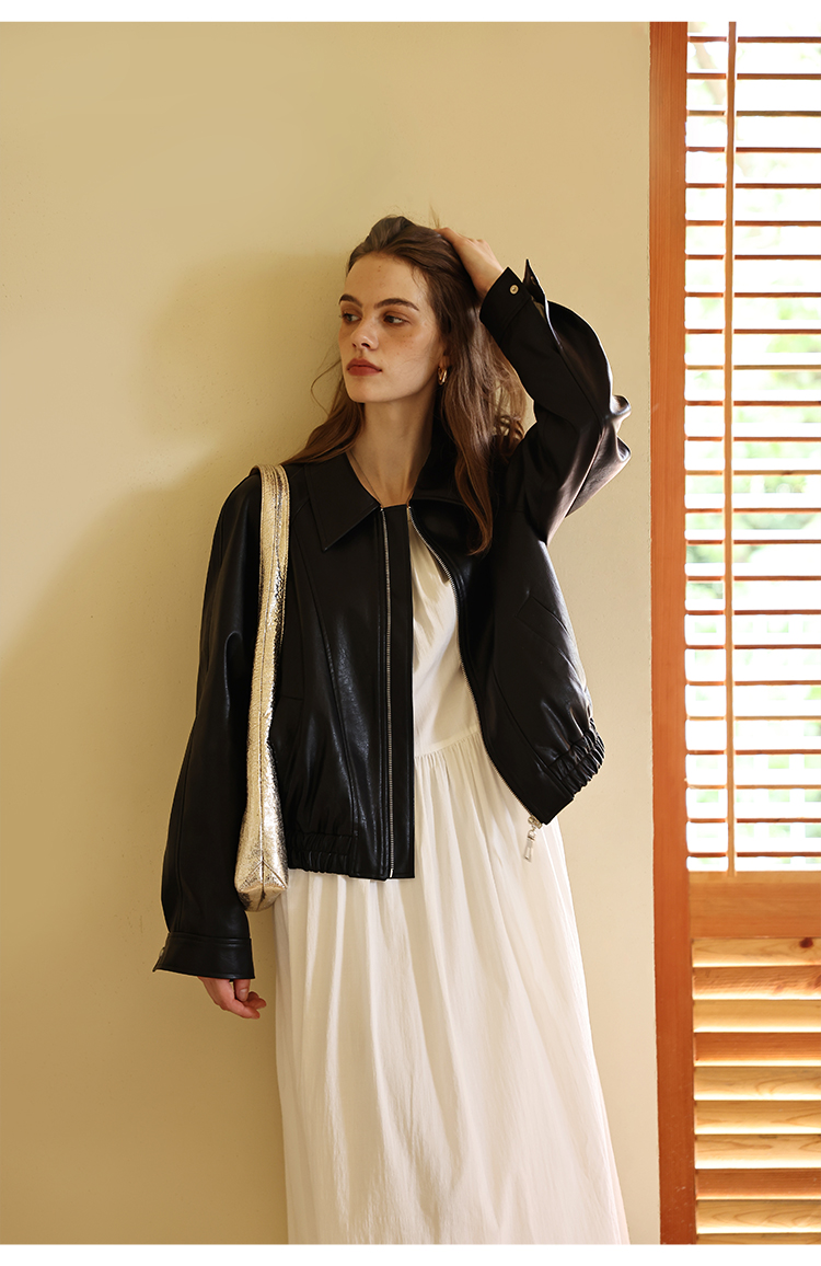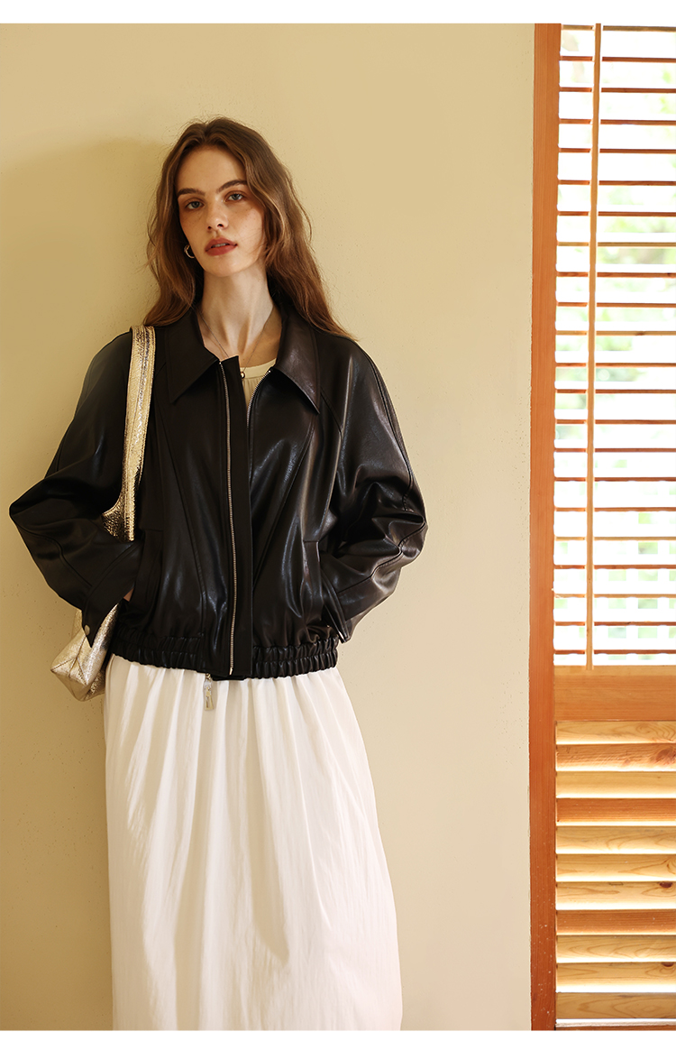 HeyDress黑色皮衣外套女秋季宽松显瘦机车风pu皮夹克短款休闲上衣