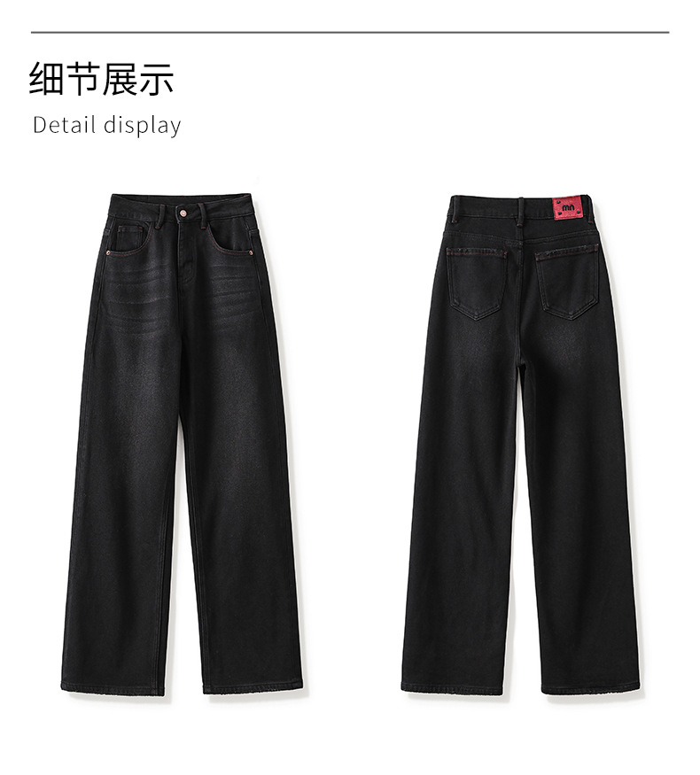 【高货wl】全新升级【铂金会员220/天猫299/差价79】(10800) 洛诗琳美式复古气质时尚通勤遮肉磨白加绒显瘦阔腿长裤