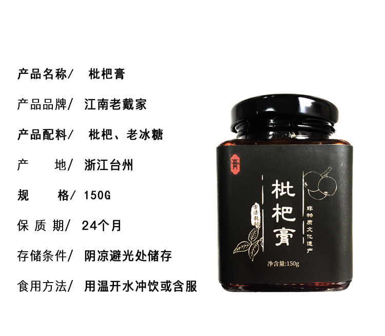 江南老戴家 浙江台州枇杷膏 150g/瓶 【木兰优选】