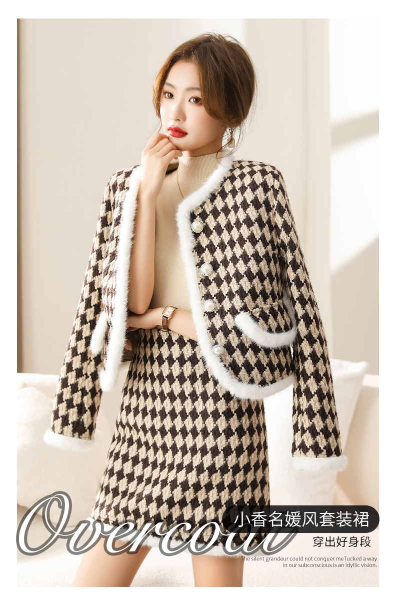 2023新款女装休闲时尚气质优雅通列减龄韩版简约小香风套裙两件套HMQY2292