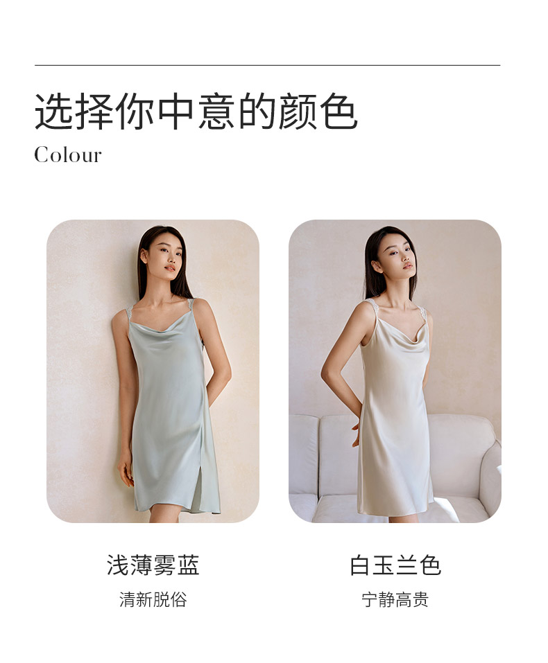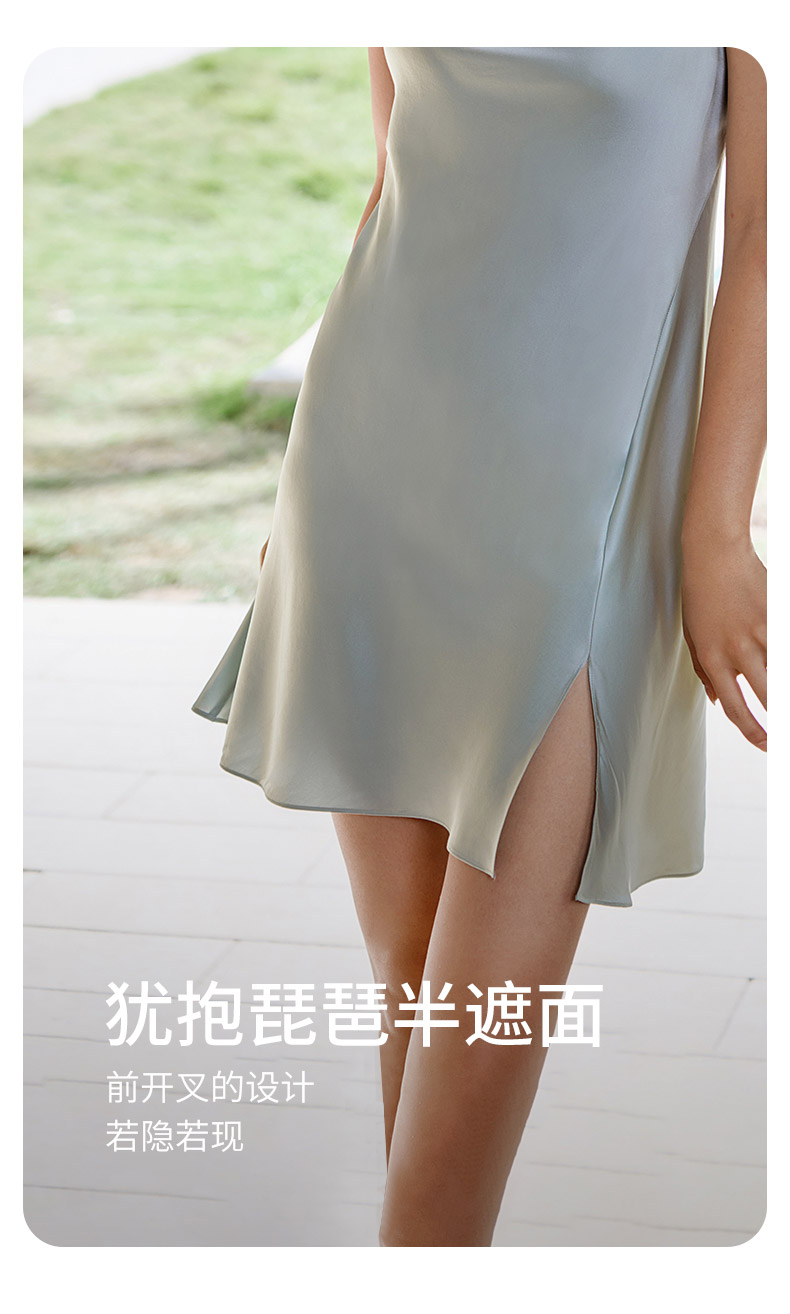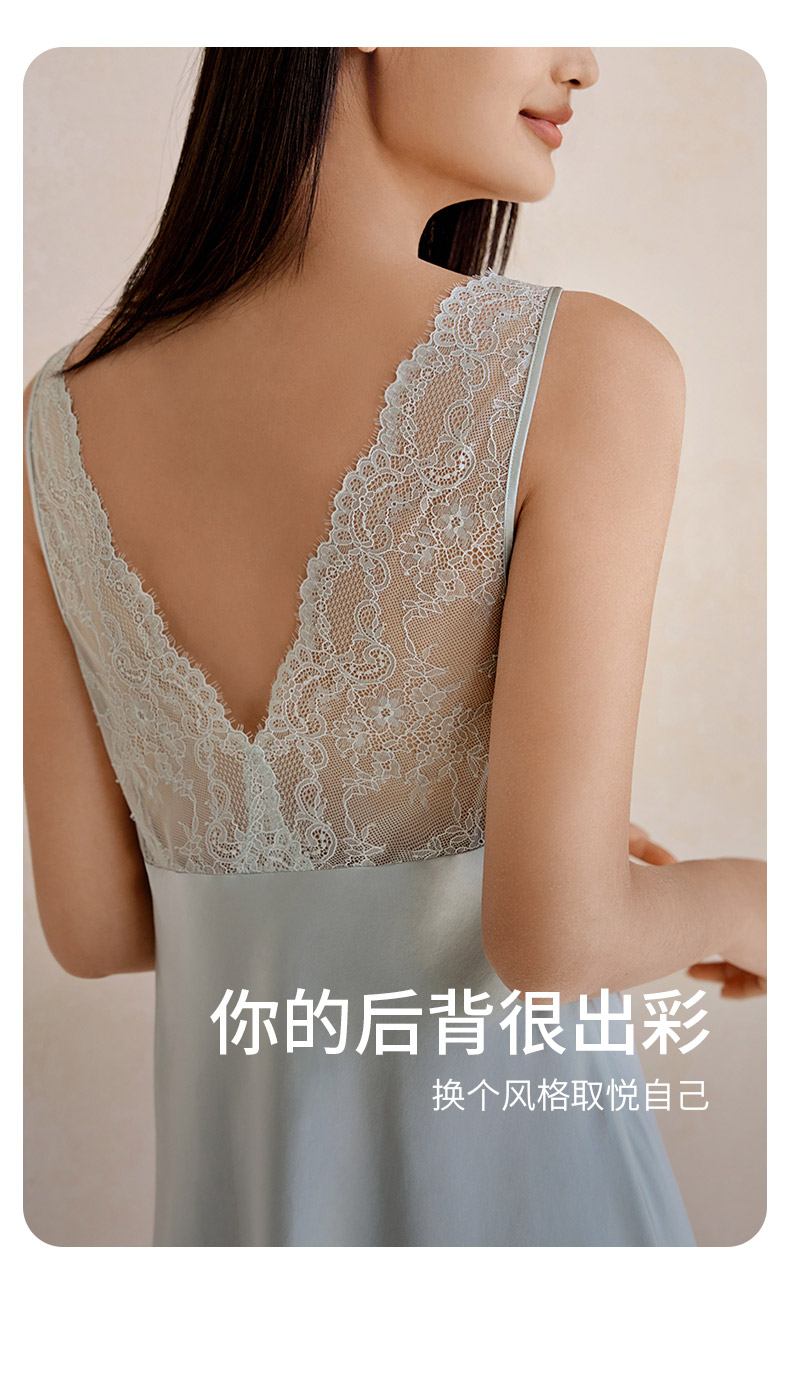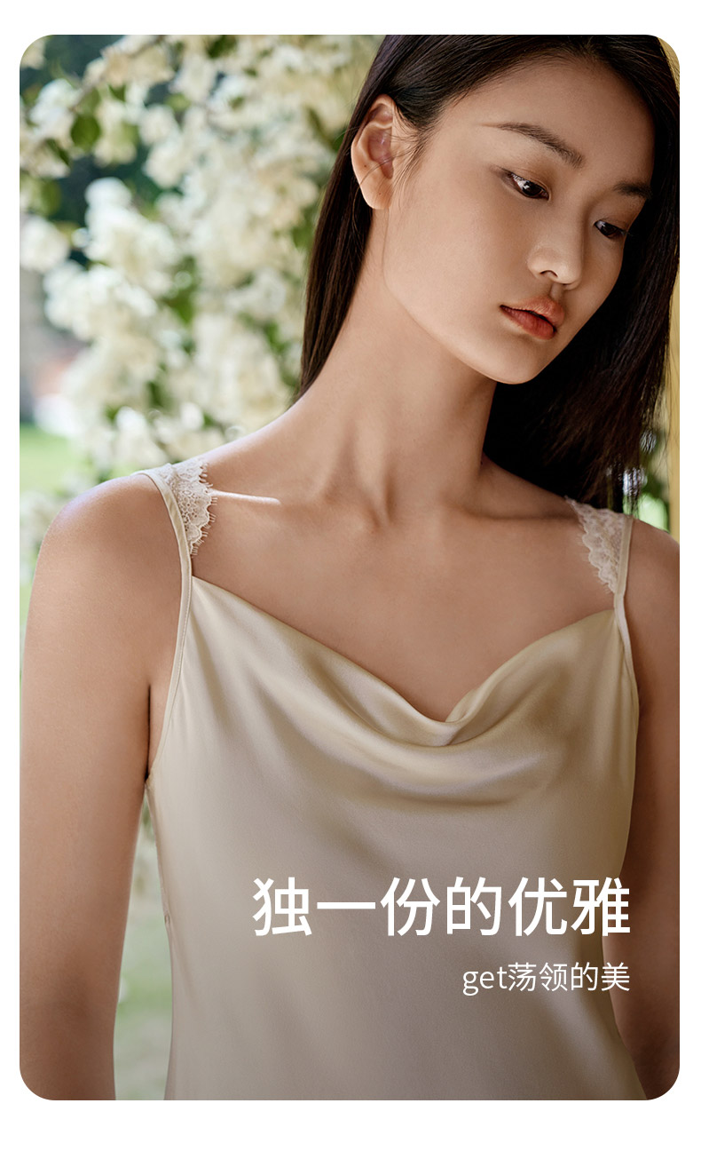 金三塔100%桑蚕丝重磅真丝美背蕾丝吊带裙