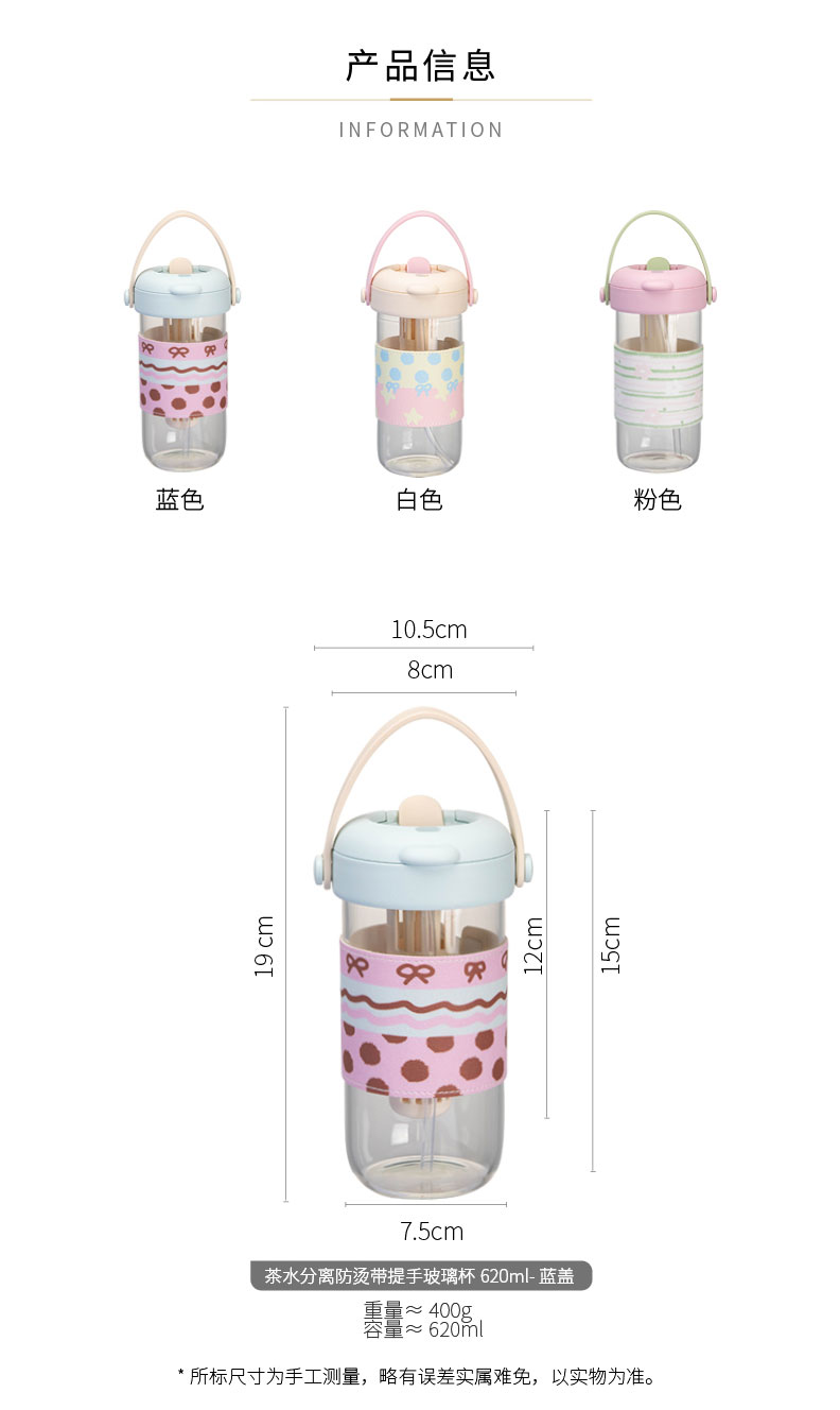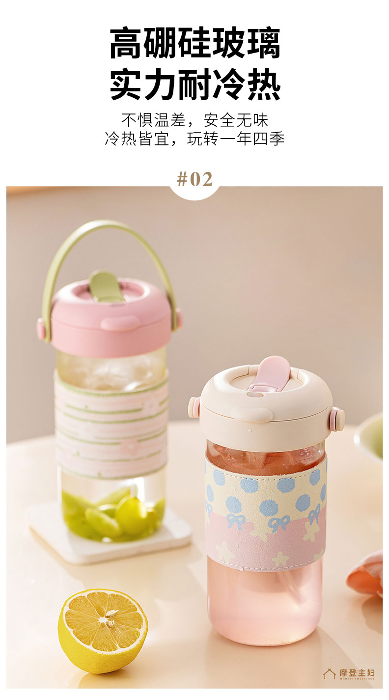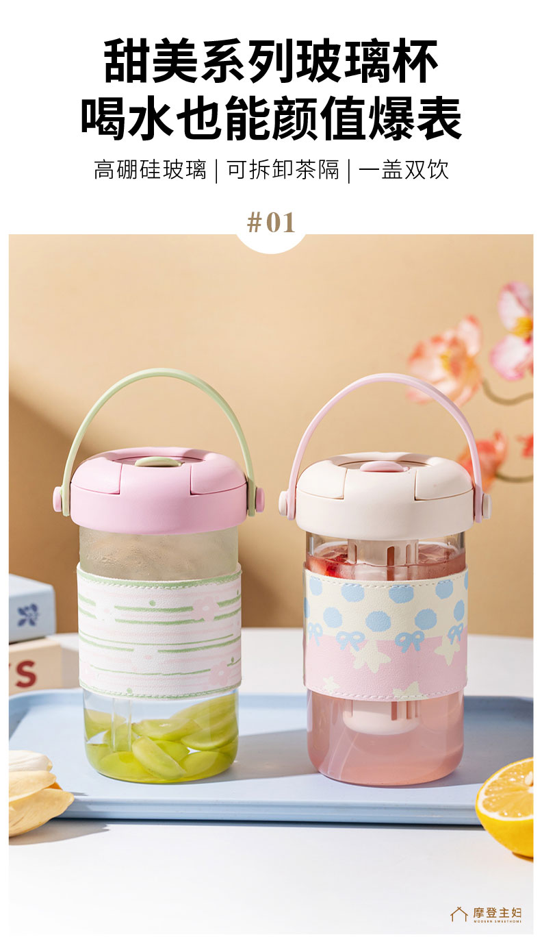 摩登主妇高颜值玻璃杯2025新款茶水分离杯水杯带提手外带吸管杯子