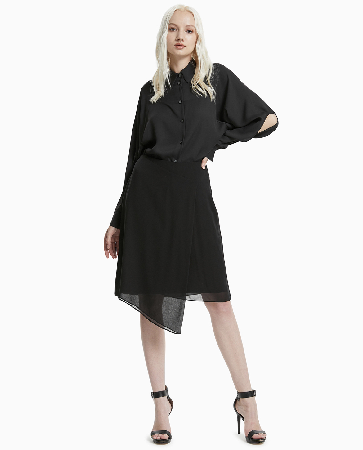 Calvin Klein 女装不规则镂空长袖衬衫W44363T400