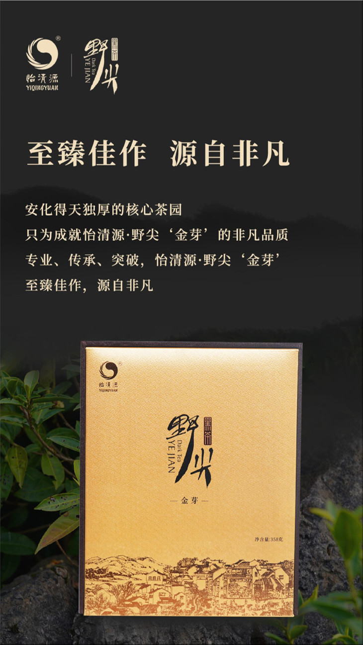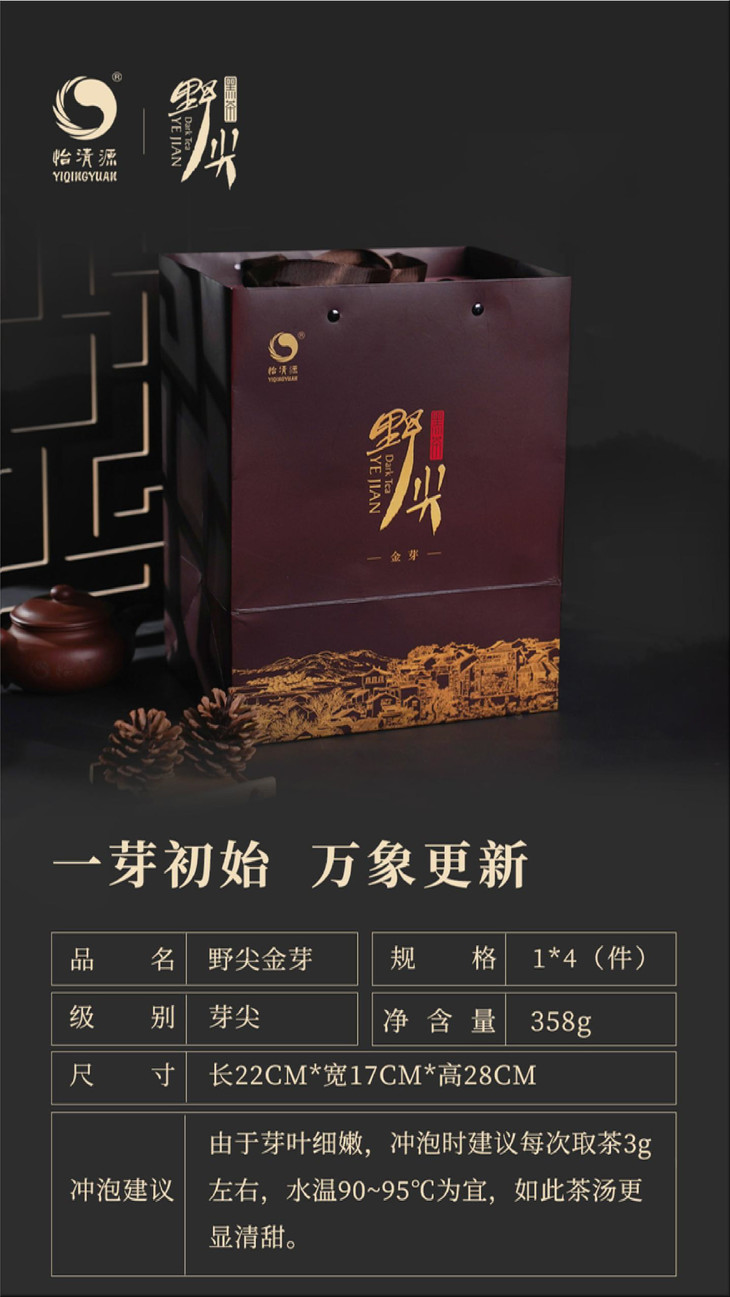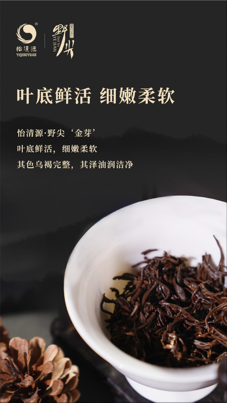 “野尖金芽”之芽叶颠覆传统天尖黑茶用料级别,采用明前一芽一叶、一芽二叶的原叶,条索乌润纤细,工艺繁琐,细致,宛如世间万象,藏于纤毫之间。
