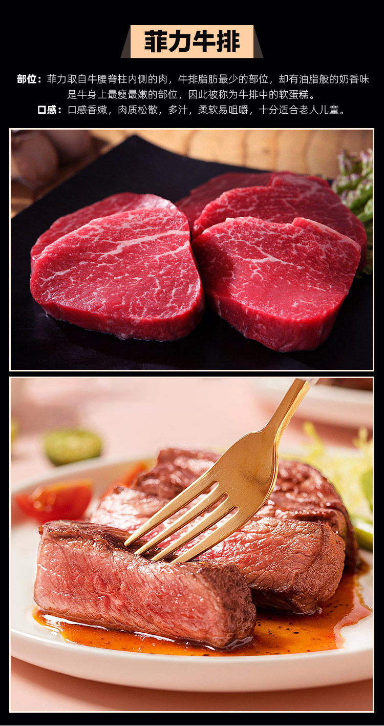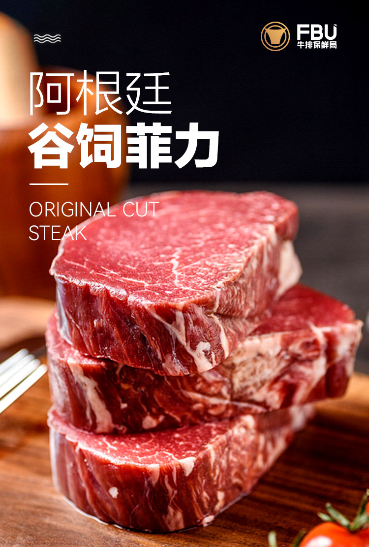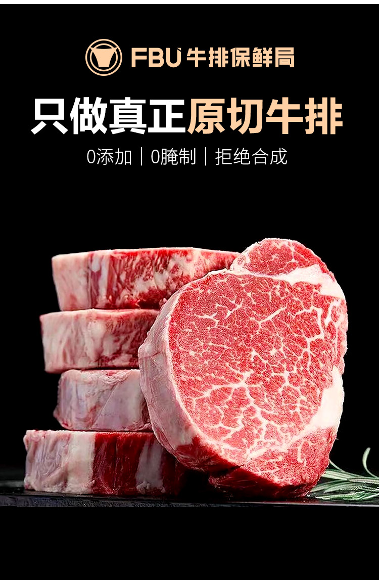 【瘦龙健康专属】FBU牛排保鲜局嫩到没朋友阿根廷谷饲菲力牛排套餐