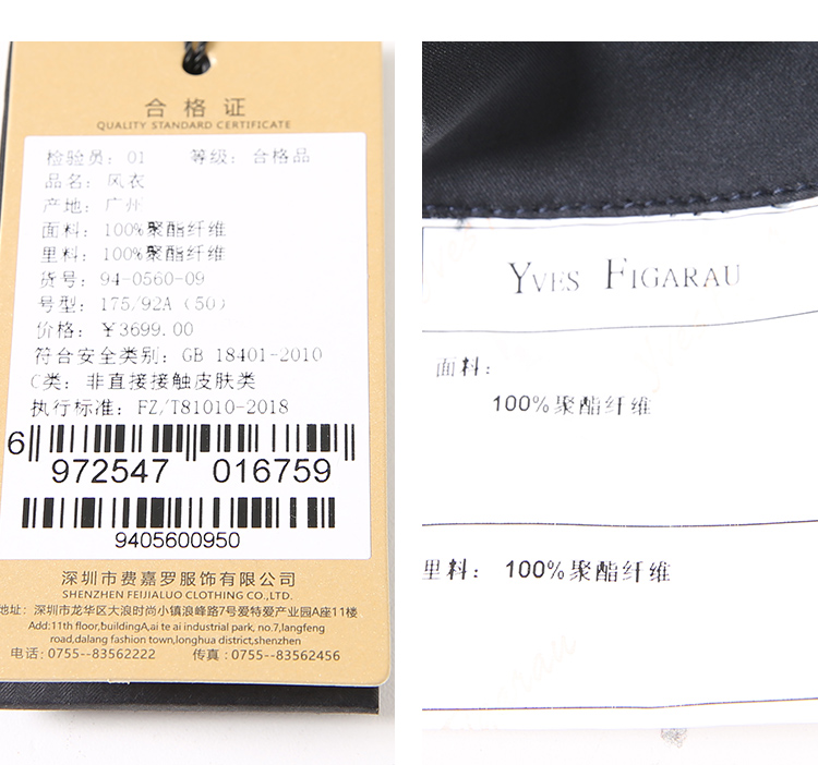 YvesFigarau伊夫·费嘉罗秋冬新款休闲时尚舒适风衣外套940560