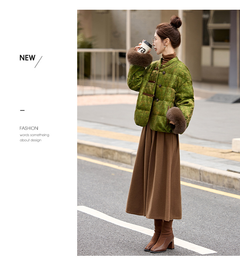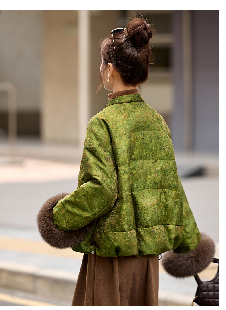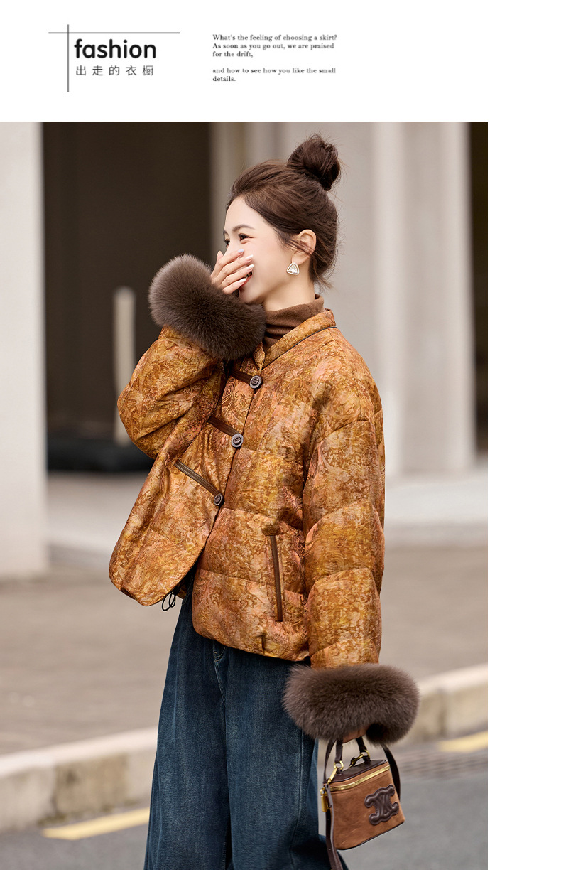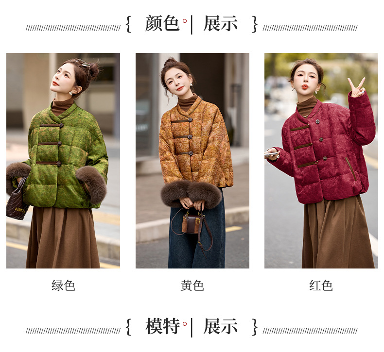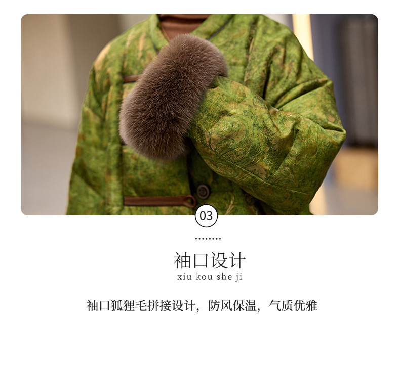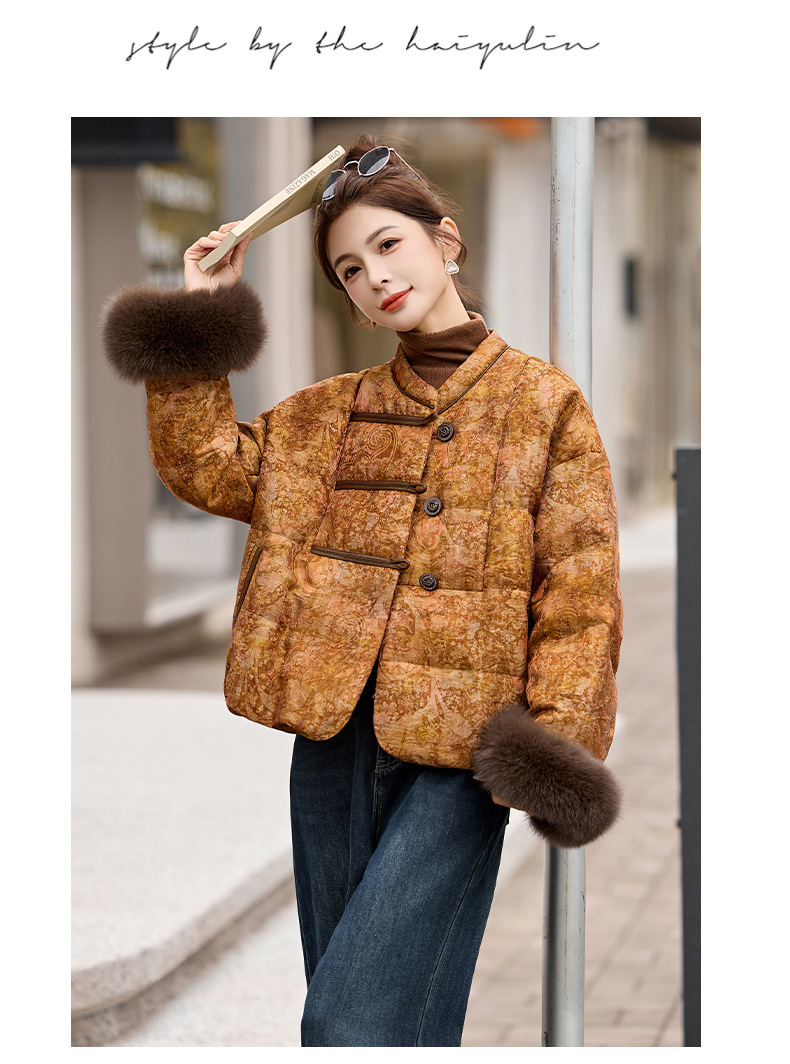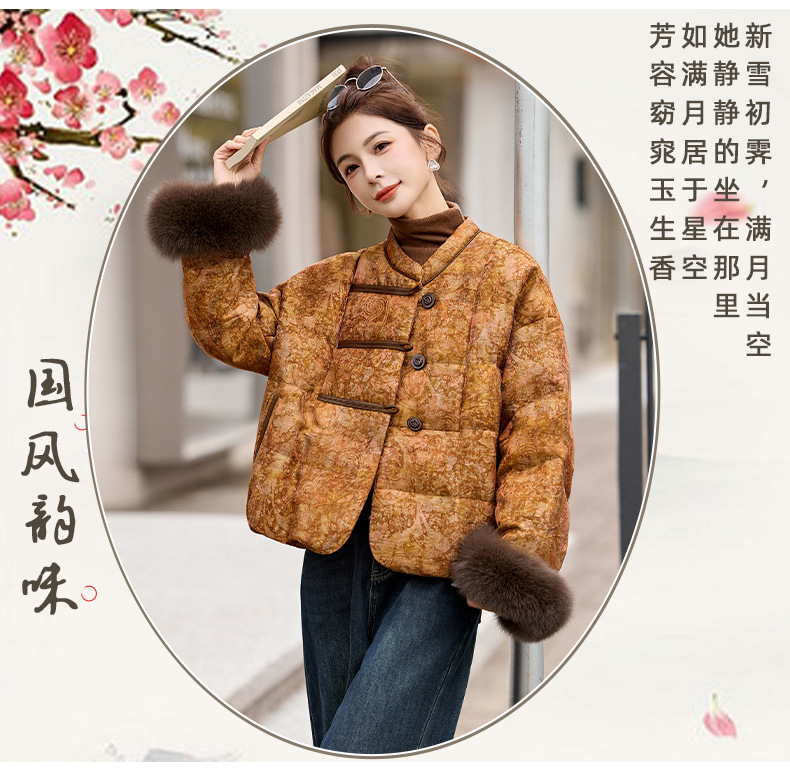 新中式国风羽绒服狐狸毛袖口,皮草显瘦外套宽松HR-GJC5511