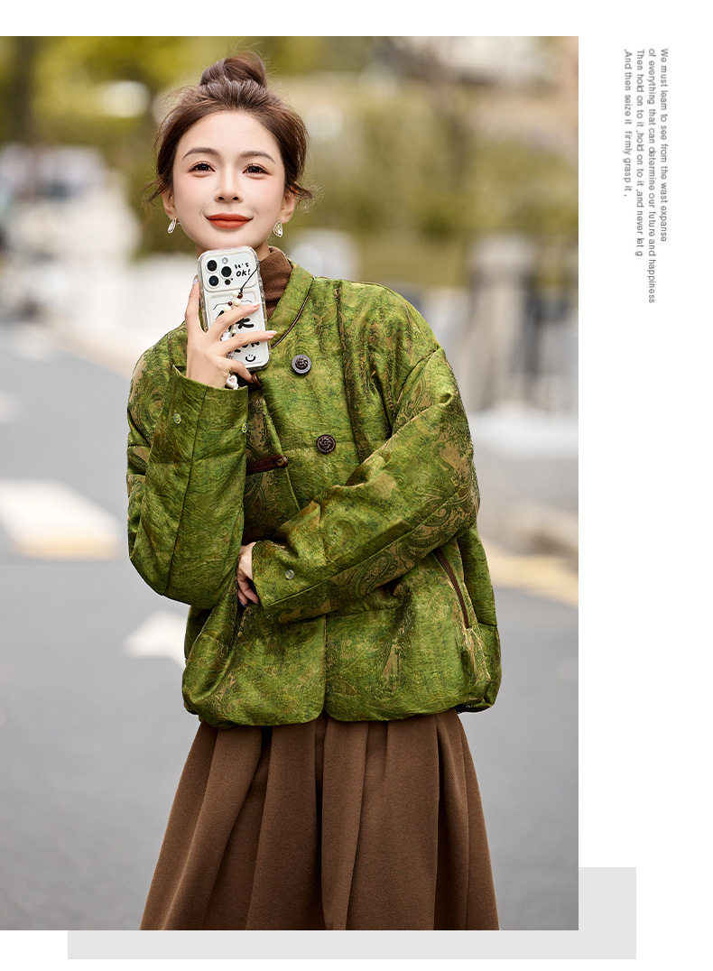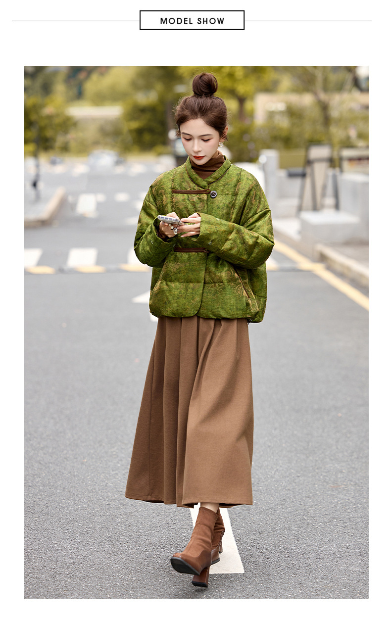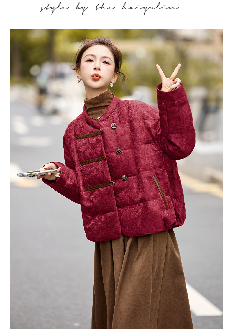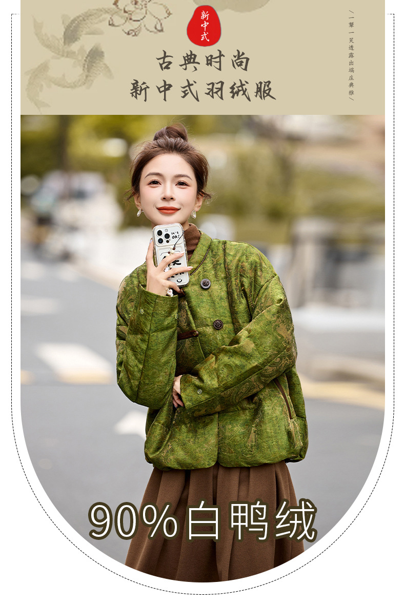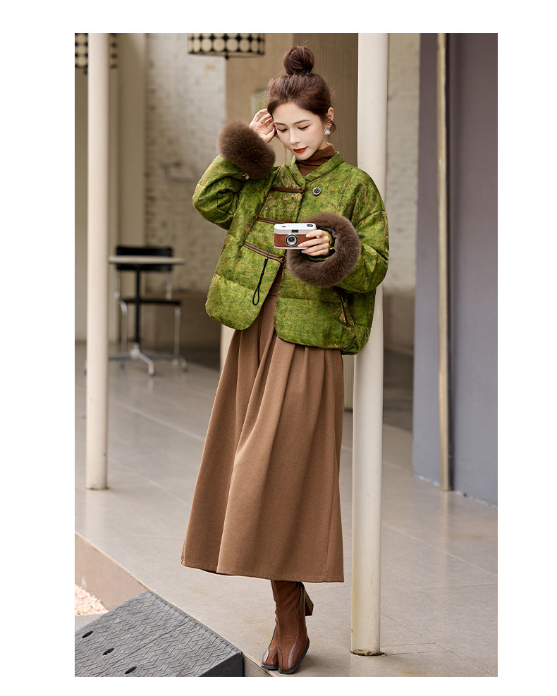 新中式国风羽绒服狐狸毛袖口,皮草显瘦外套宽松HR-GJC5511