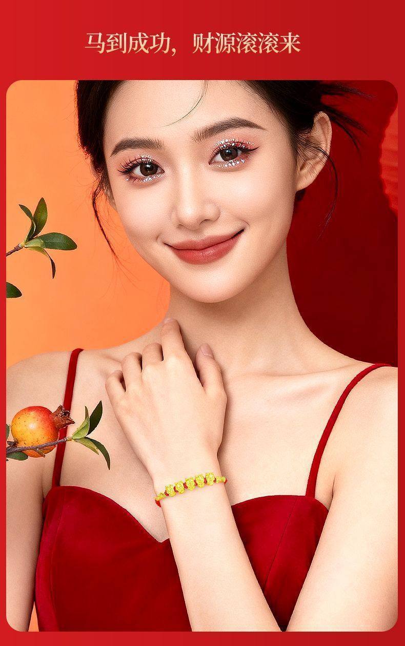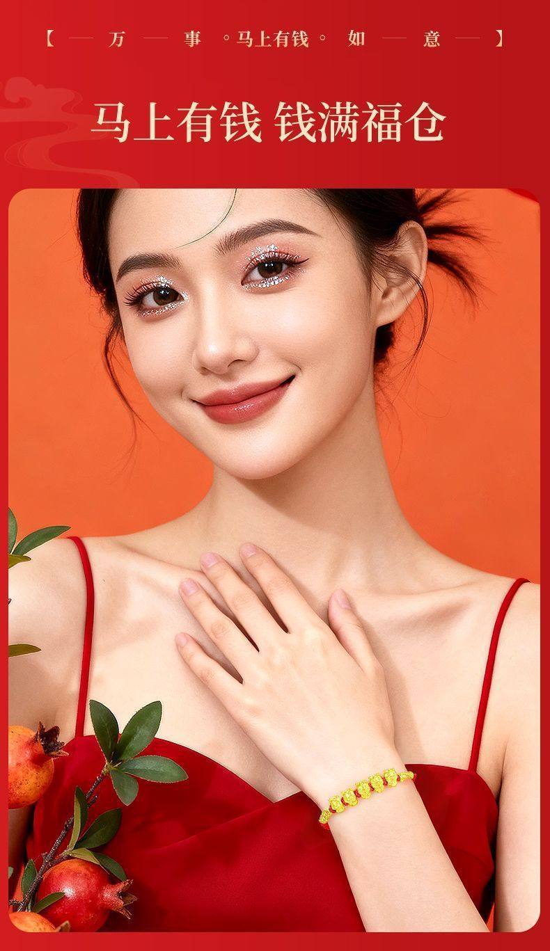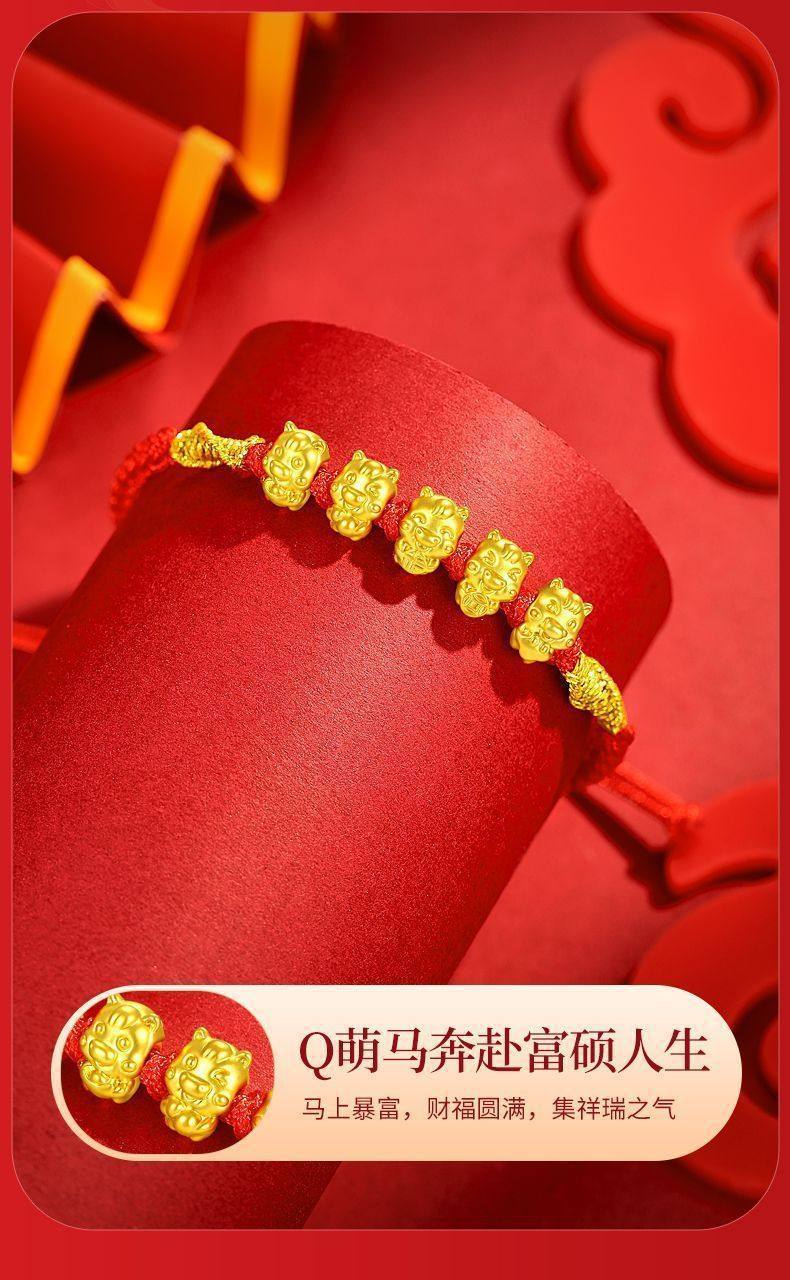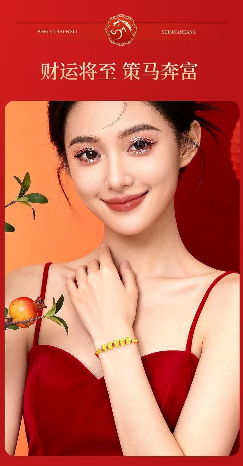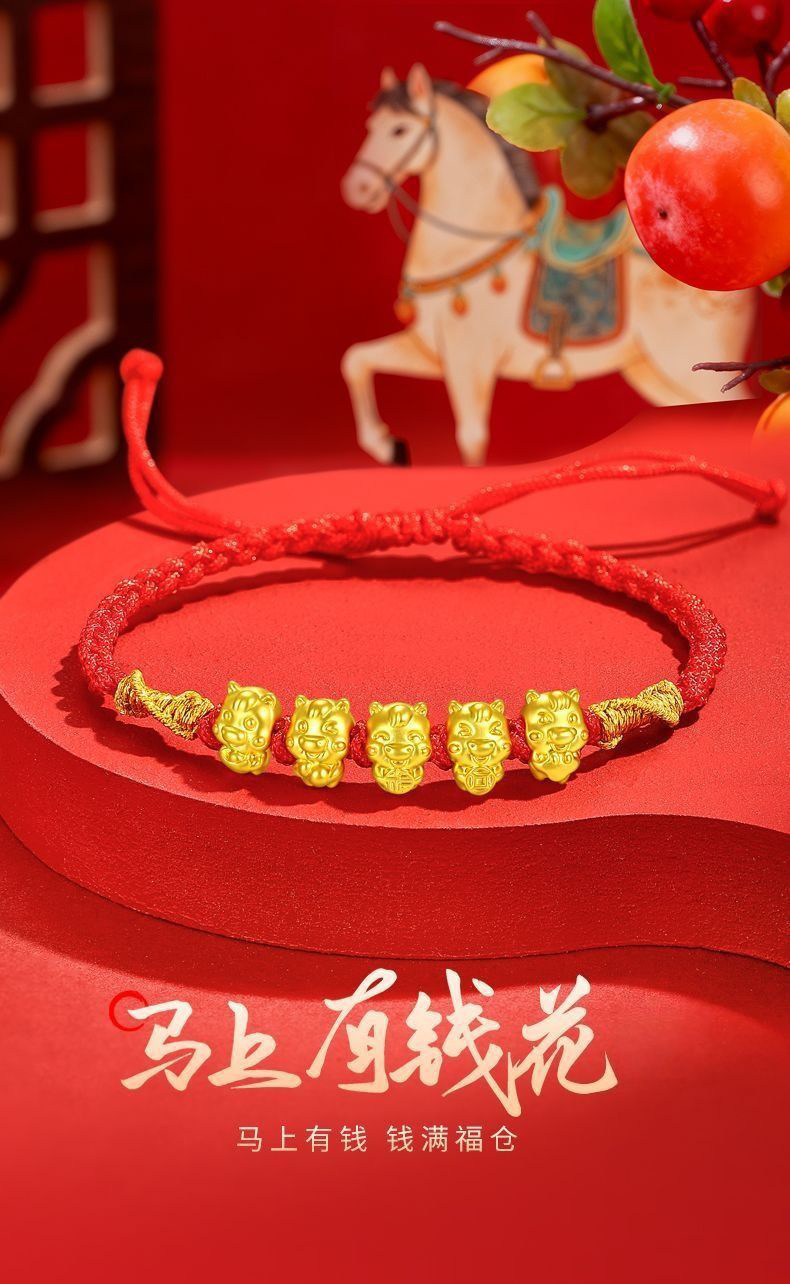 【品名】黄金五福马编绳手串