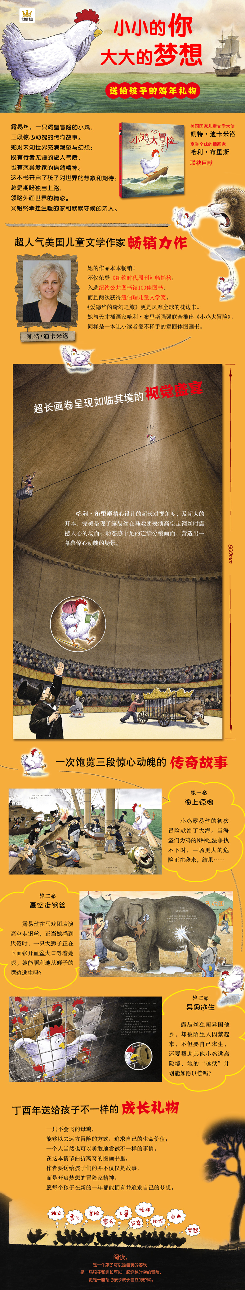 【5-8 岁】小鸡大冒险:三度纽伯瑞文学奖得主凯特·迪卡米洛作品!这只像卡梅拉一样勇敢闯世界的小鸡告诉你:“飞”得多远,并不完全取决于你的翅膀,更取决于你的心
