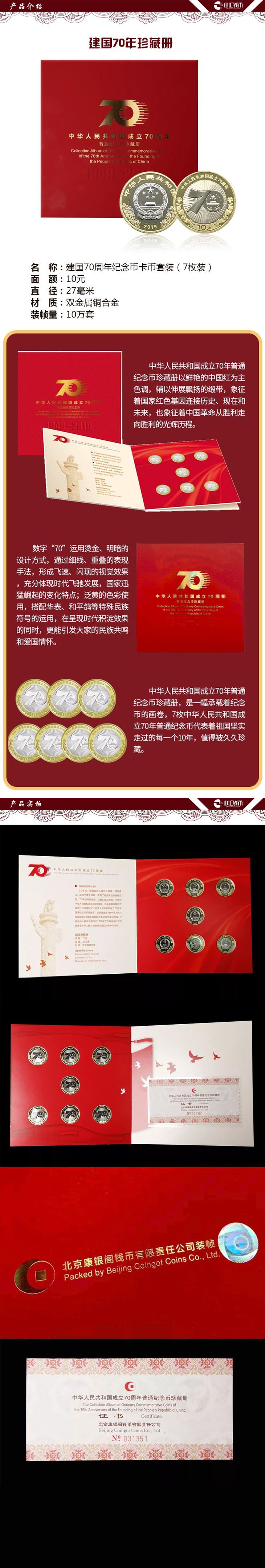 中华人民共和国成立70周年纪念币卡币套装(7枚装)