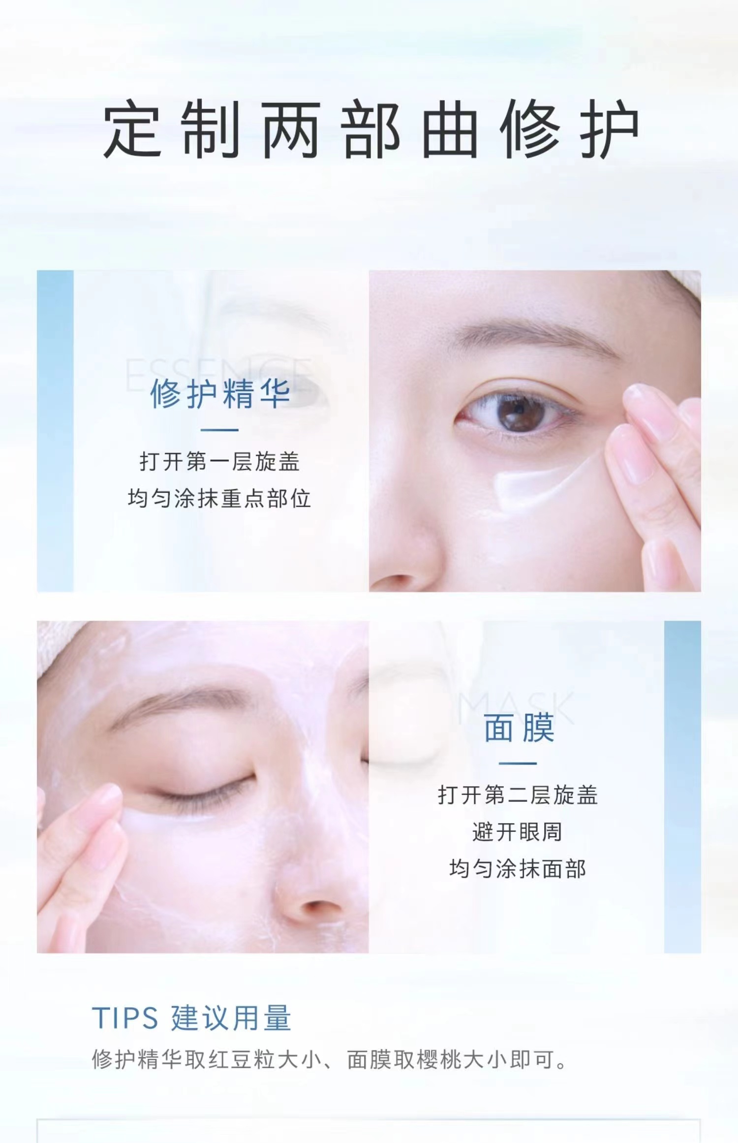 先精华后涂抹,两层涂抹式面膜,是我从未体验过的面膜。(详看使用步骤,护肤步骤)