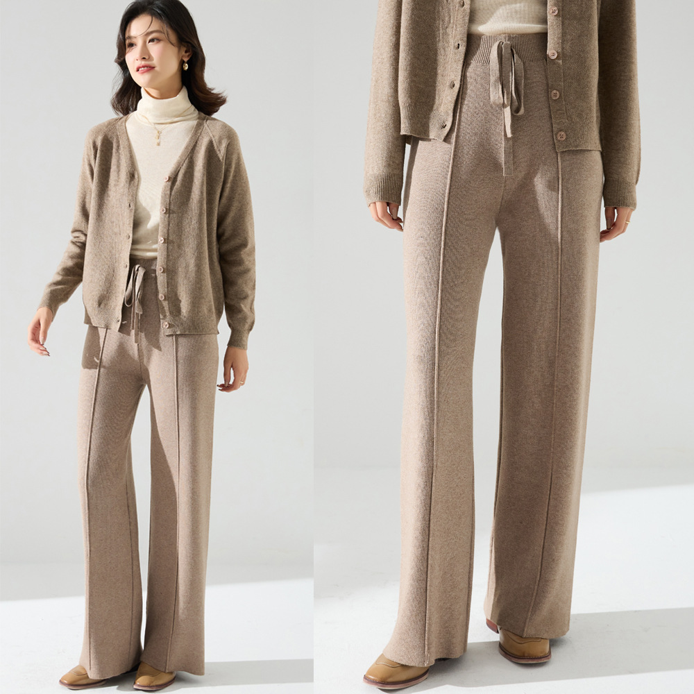 【高货sh】全新升级【铂金会员146/天猫189/差价43】(53414)洛诗琳秋冬高腰垂感宽松拖地休闲百搭直筒裤针织阔腿长裤