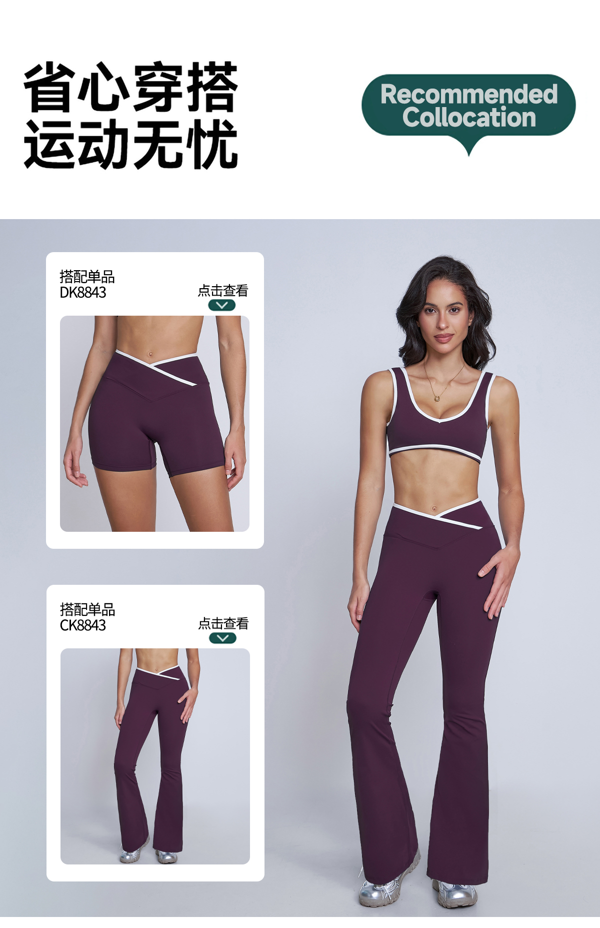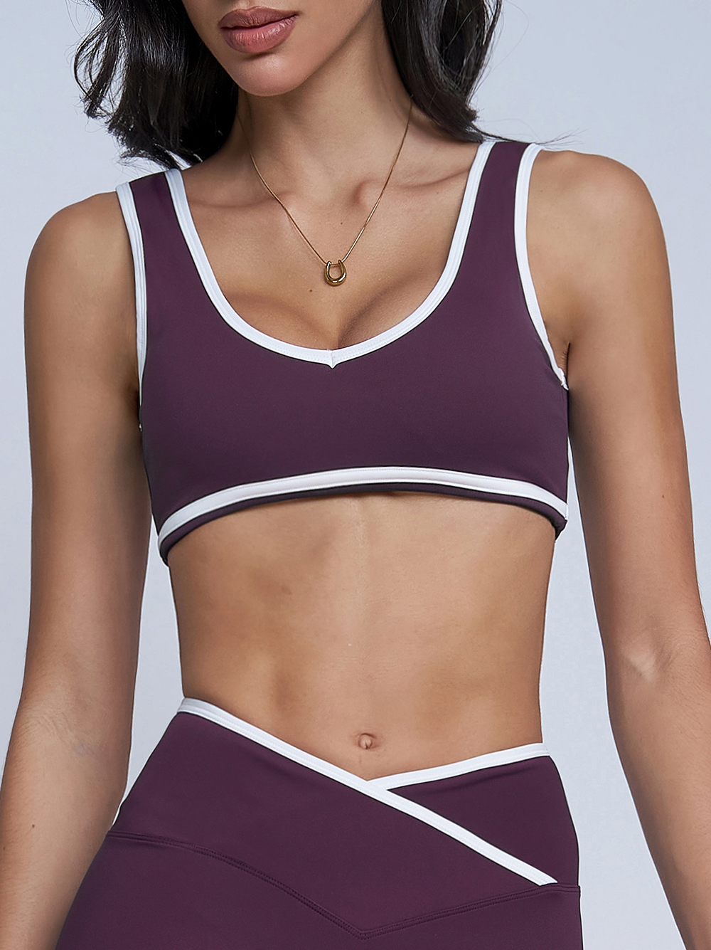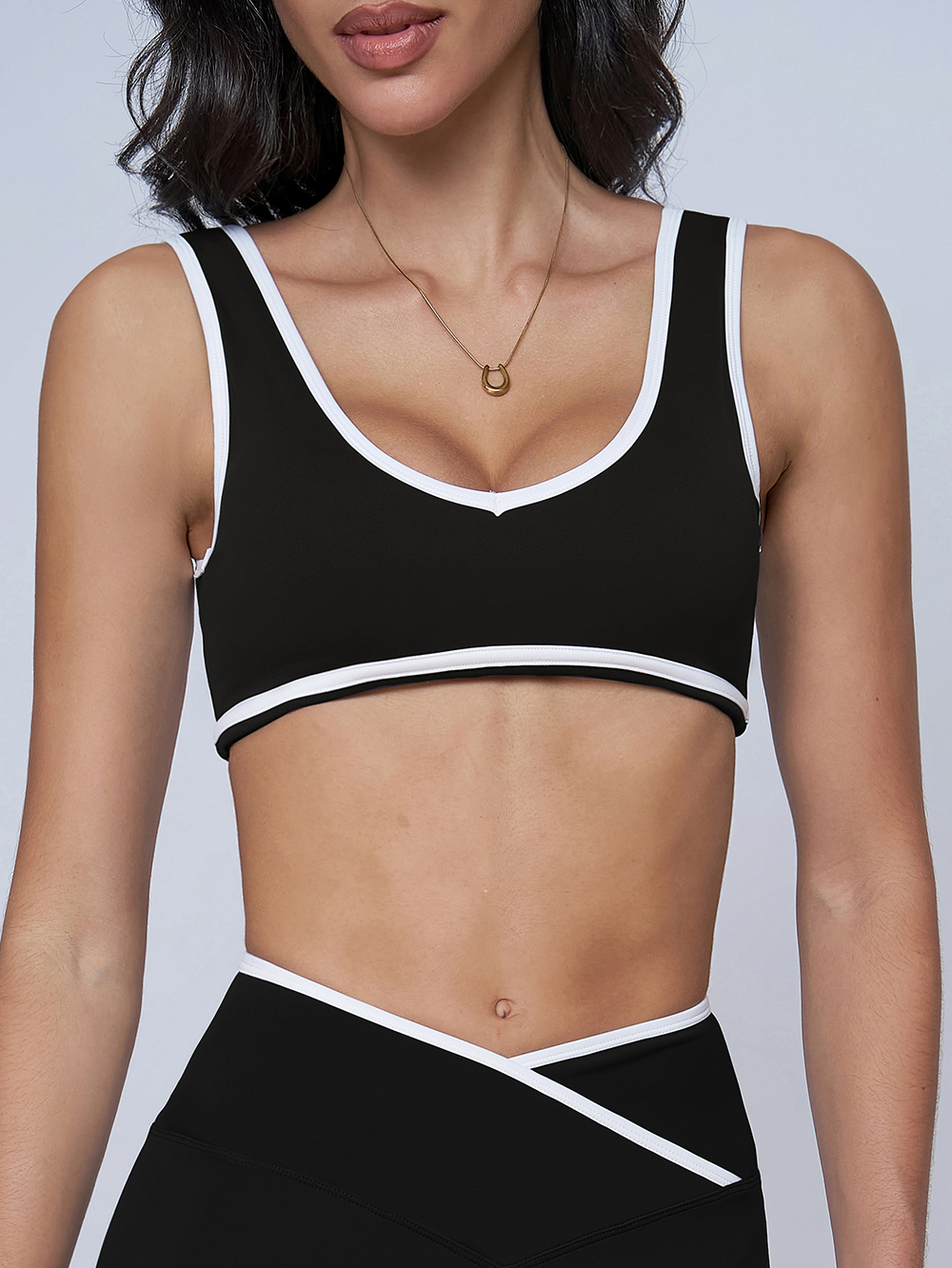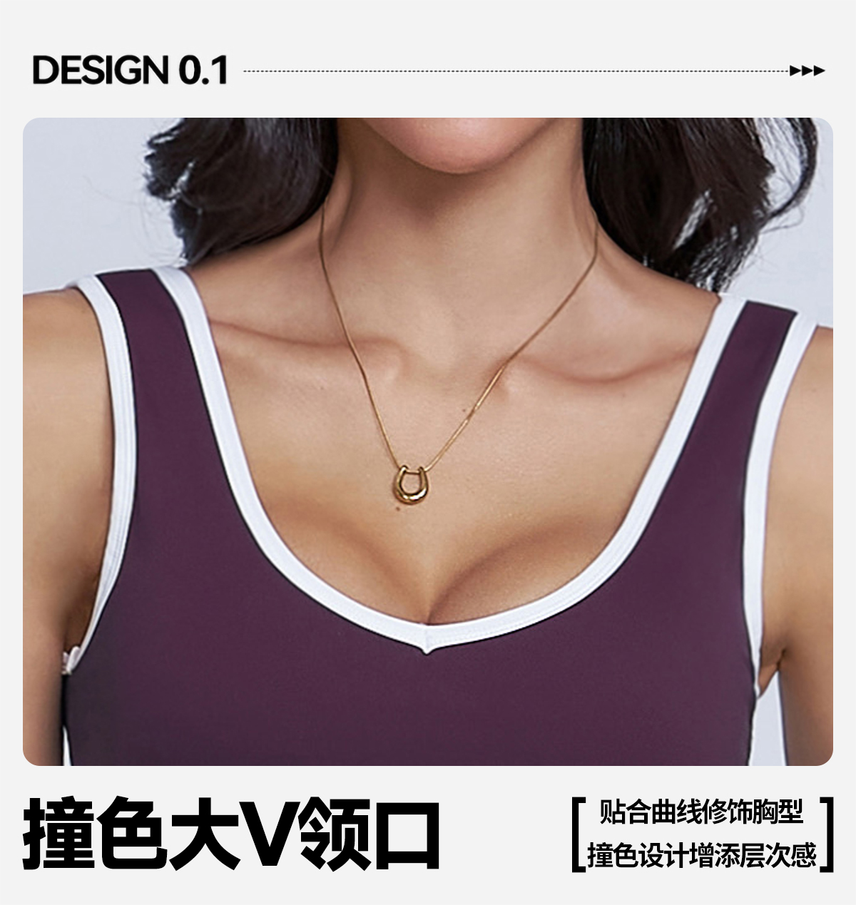 跃牌【轻匀系列】新款撞色宽肩带运动内衣防震女一体式瑜伽文胸户外健身服WX6368