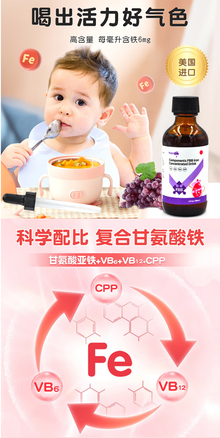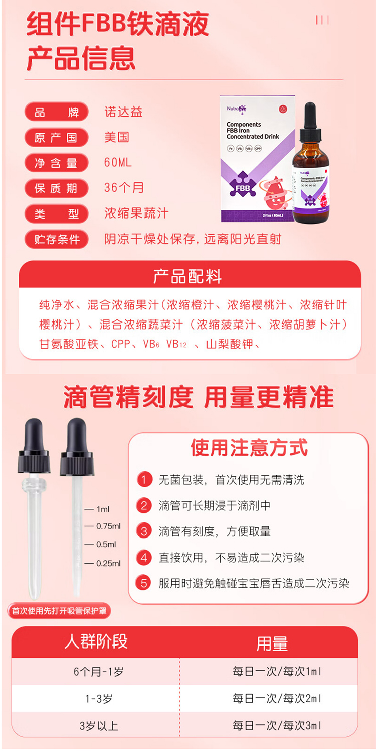 诺达益组件铁(FBB)B6铁滴剂60ml 预防改善贫血
