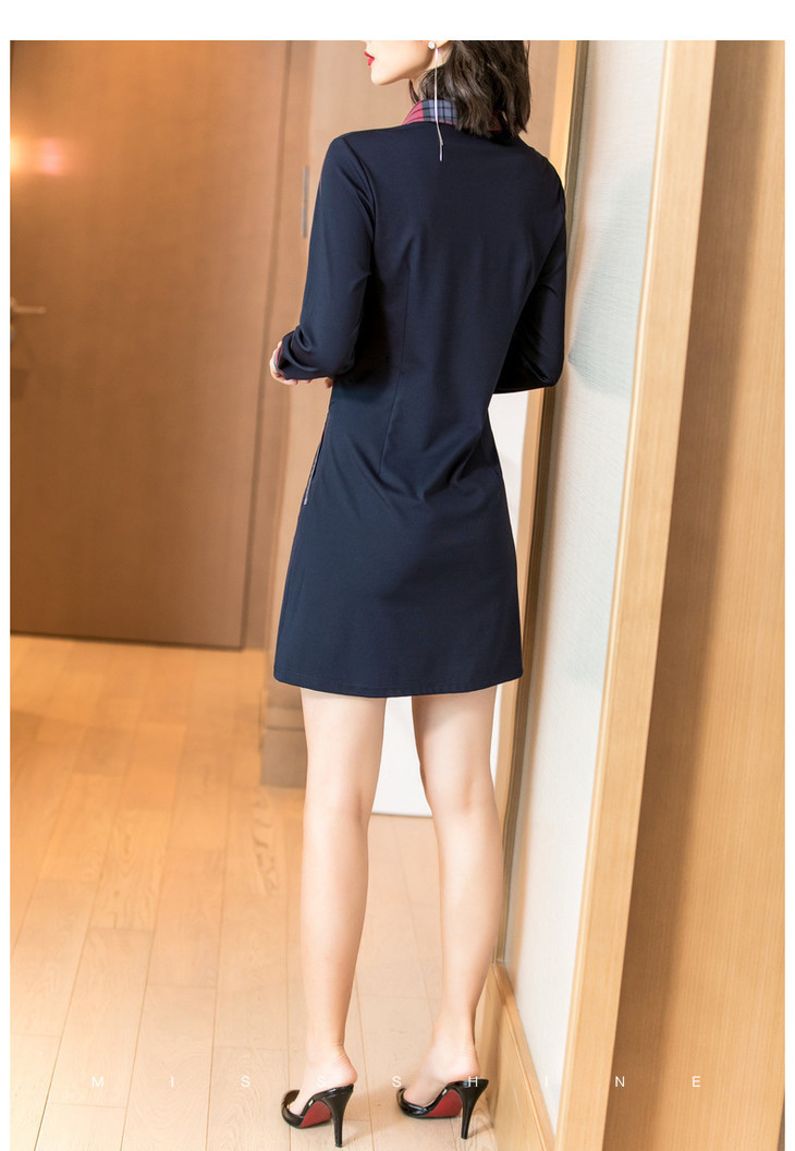 DL-5042春季新款时尚气质拼接一步裙修身显瘦休闲针织连衣裙