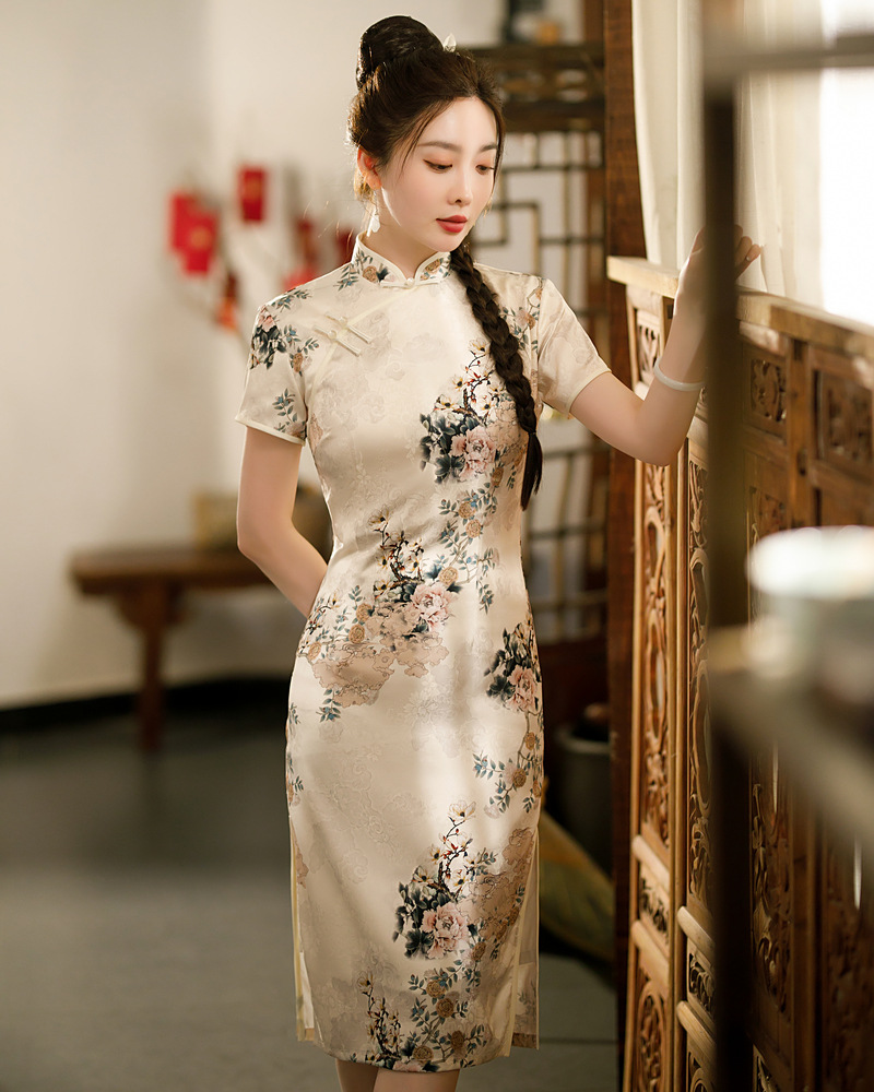 中国风中长旗袍连衣裙,日常复古气质旗袍ZA-82270