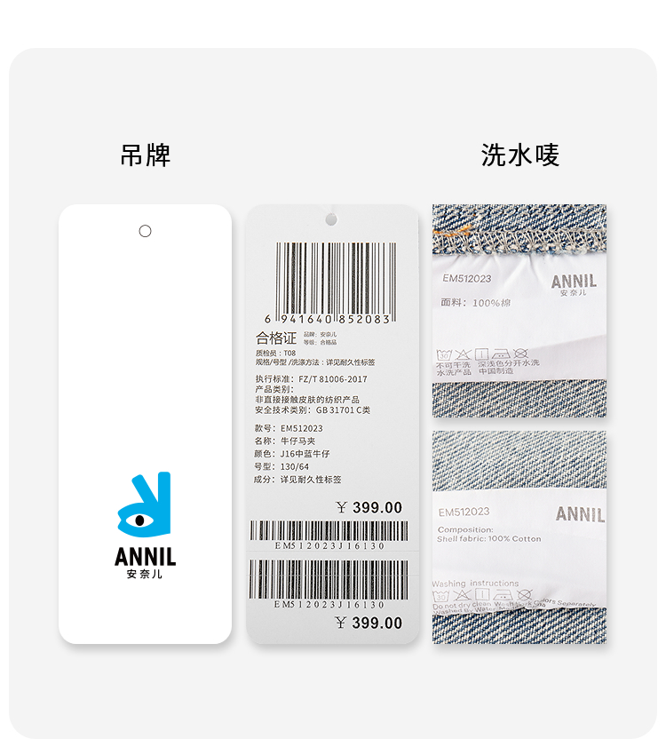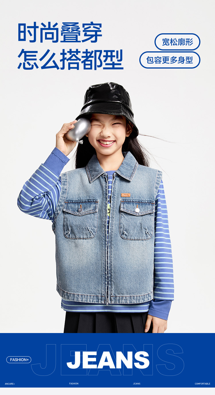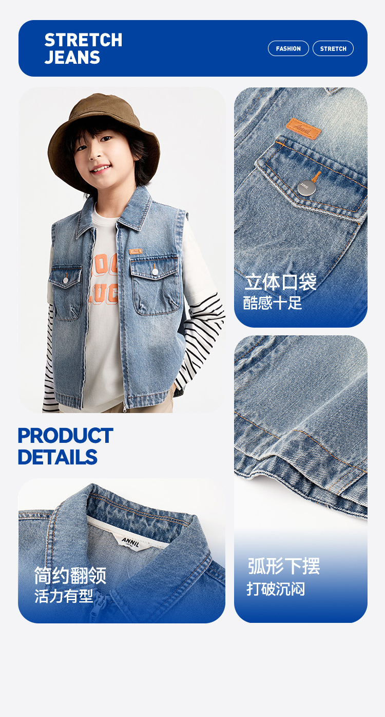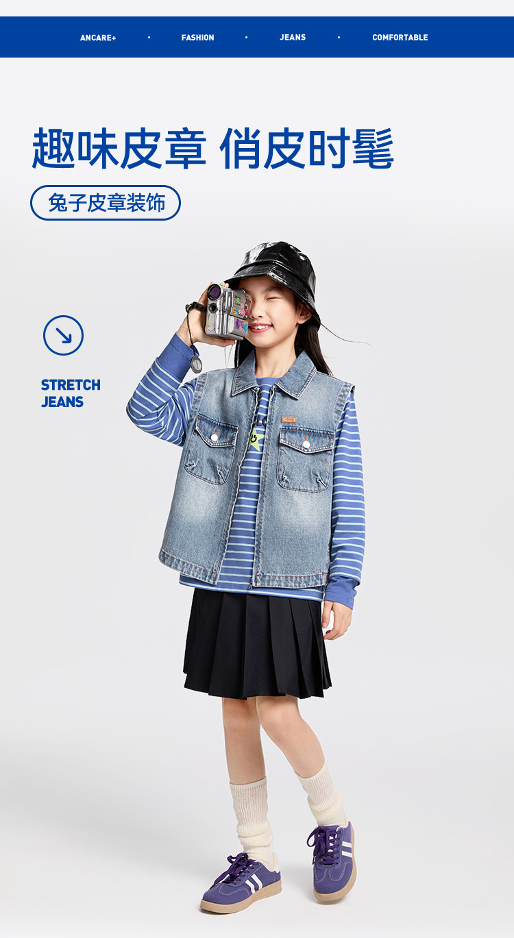 男童女童牛仔马夹春季新款安奈儿童装EM512023