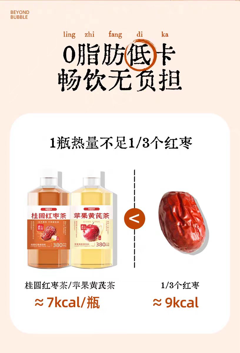 【甄选】苹果黄芪茶&桂圆红枣茶饮料元气自在原汁原味丝丝回甘380ml*6瓶