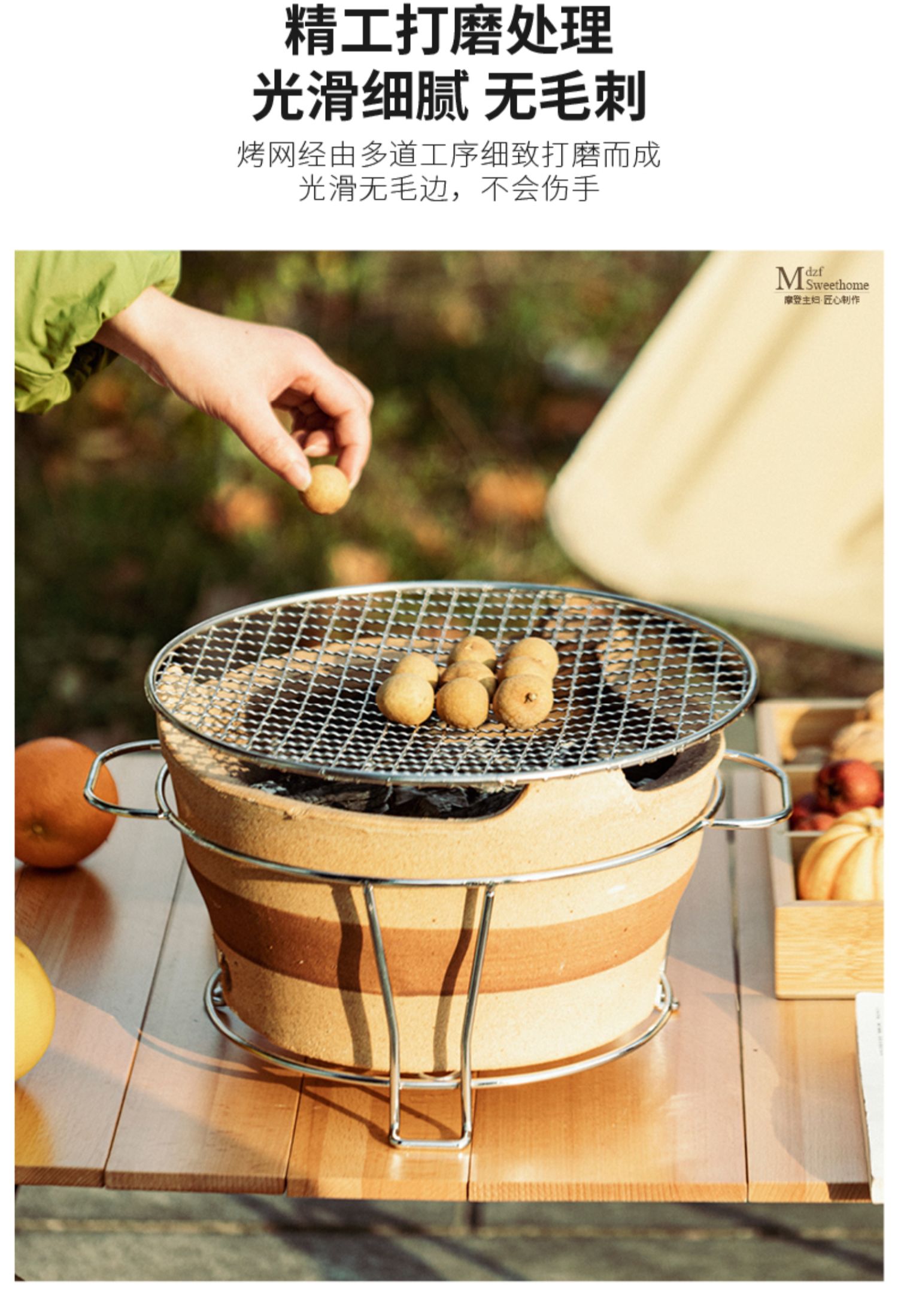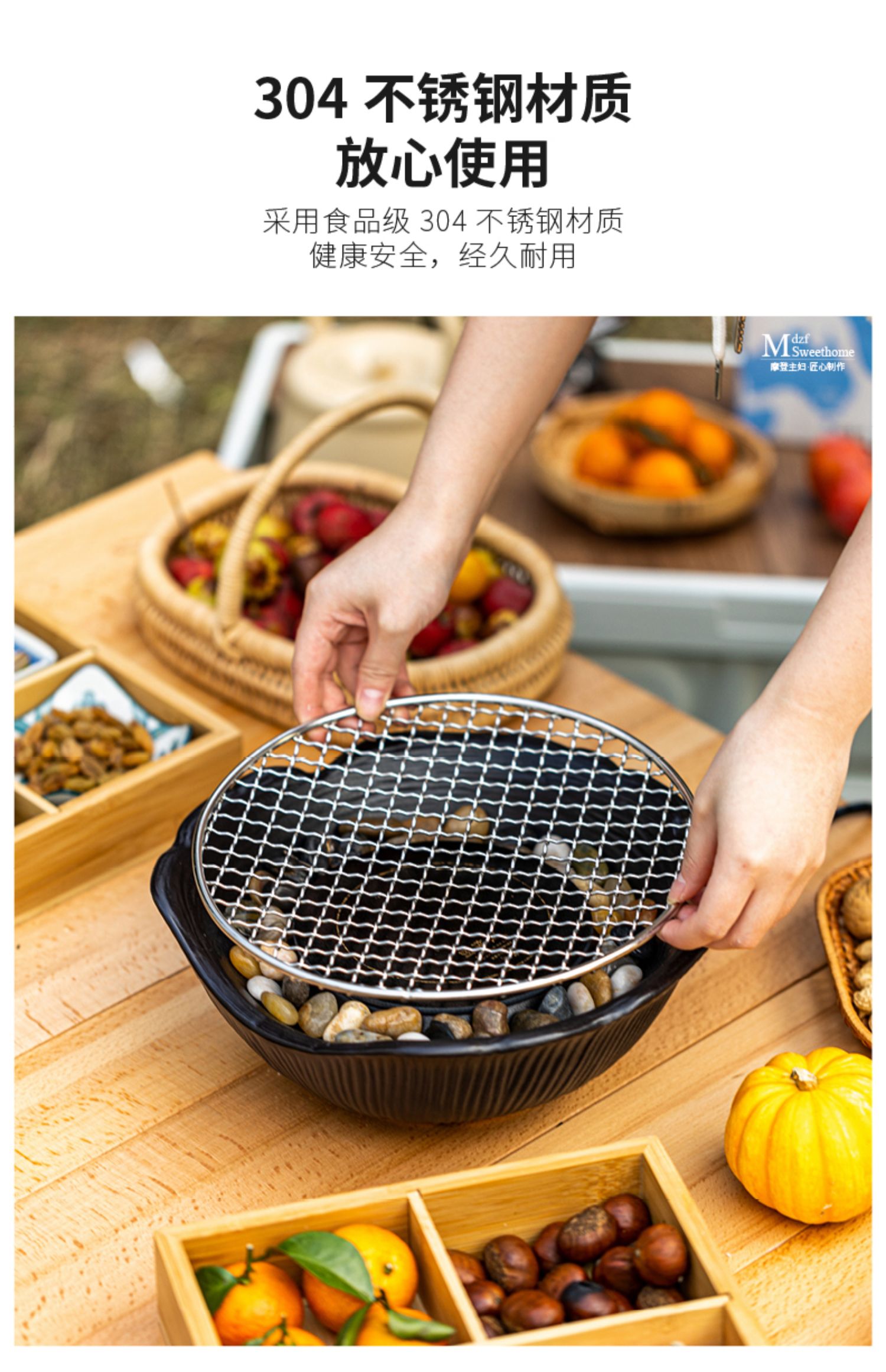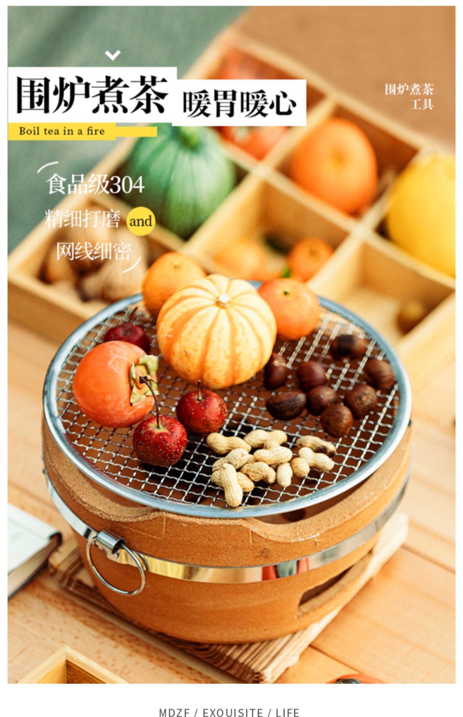 摩登主妇围炉煮茶家用室内烤网304不锈钢圆形茶壶电陶炉烧烤架网